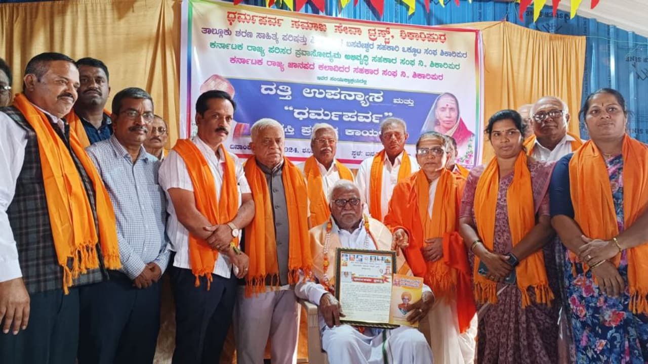 ಶಿಕಾರಿಪುರದಲ್ಲಿ ಶರಣ ಸಾಹಿತ್ಯ ಪರಿಷತ್ತು ಆಯೋಜಿಸಿದ್ದ ದತ್ತಿನಿಧಿ ಕಾರ್ಯಕ್ರಮದಲ್ಲಿ ಬಿದರಹಳ್ಳಿ ನಾಗೇಶಪ್ಪ ಮತ್ತಿತರರಿಗೆ ಧರ್ಮಪರ್ವ ಪ್ರಶಸ್ತಿ ನೀಡಿ ಸನ್ಮಾನಿಸಲಾಯಿತು. ಎಂ.ಕೆ. ಶಶಿಧರಸ್ವಾಮಿ, ಮಾತೆ ಶರಣಾಂಬಿಕೆ, ಎಚ್.ಎ.ದಿನಕರ, ಶಾಂತಲಾ ಬಿ.ಡಿ.ಭೂಕಾಂತ್ ಮತ್ತಿತರರು ಇದ್ದರು.
