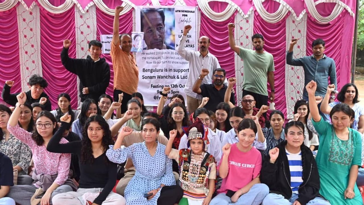 ಸಂವಿಧಾನದ 6ನೇ ಪರಿಚ್ಛೇದಕ್ಕೆ ಲಡಾಖ್ ಸೇರ್ಪಡೆಗೆ ಆಗ್ರಹಿಸಿ ಹೋರಾಟ ನಡೆಸುತ್ತಿರುವ ಸಾಮಾಜಿಕ ಹೋರಾಟಗಾರ ಸೋನಂ ವಾಂಗ್ಚುಕ್ ಅವರನ್ನು ಬೆಂಬಲಿಸಿ ಲಡಾಖ್ ಮೂಲದವರು ನಗರದ ಸ್ವಾತಂತ್ರ್ಯ ಉದ್ಯಾನದಲ್ಲಿ ಭಾನುವಾರ ಬೆಳಗ್ಗೆಯಿಂದ ಸಂಜೆವರೆಗೆ ಉಪವಾಸ ಸತ್ಯಾಗ್ರಹ ಪ್ರತಿಭಟನೆ ನಡೆಸಿದರು.ಇಡೀ ದೇಶದಲ್ಲಿ ವಿಭಿನ್ನವಾದ ವಾತಾವರಣ, ಭೌಗೋಳಿಕ ಪ್ರದೇಶ ಮತ್ತು ಬುಡಕಟ್ಟು ಸಮುದಾಯಗಳು ನೆಲೆಸಿರುವ ಲಡಾಖ್ ಅನ್ನು ಸಂವಿಧಾನದ 6ನೇ ಪರಿಚ್ಛೇದಕ್ಕೆ ಸೇರಿಸಬೇಕು. ಅಭಿವೃದ್ಧಿ ಹೆಸರಿನಲ್ಲಿ ಲಡಾಖ್ ಪ್ರದೇಶದಲ್ಲಿ ಆಗುತ್ತಿರುವ ಪರಿಸರ ಹಾನಿಯನ್ನು ತಪ್ಪಿಸಬೇಕು ಎಂದು ಸೋನಂ ವಾಂಗ್ಚುಕ್ ಅವರು ನಡೆಸುತ್ತಿರುವ ಉಪವಾಸ ಸತ್ಯಾಗ್ರಹದ ಹೋರಾಟಕ್ಕೆ ಬೆಂಬಲಿಸುವುದಾಗಿ ಪ್ರತಿಭಟನೆಕಾರರು ಹೇಳಿದರು.