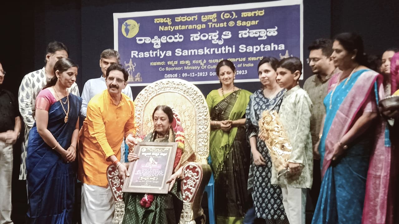 ಸಾಗರದಲ್ಲಿ ನಾಟ್ಯತರಂಗ ಸಂಸ್ಥೆ ವತಿಯಿಂದ ಡಾ.ಪದ್ಮಾ ಸುಬ್ರಹ್ಮಣ್ಯಂ ಅವರಿಗೆ ಸಾಂಸ್ಕೃತಿಕ ಸಾರಥಿ ಪುರಸ್ಕಾರ ನೀಡಿ ಗೌರವಿಸಲಾಯಿತು.