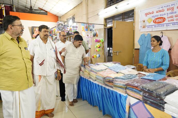 ಮಂಗಳೂರು: ಮಂಗಳೂರಿನ ವಿ.ಟಿ. ರಸ್ತೆಯಲ್ಲಿರುವ ಇತಿಹಾಸ ಪ್ರಸಿದ್ಧ ಶ್ರೀ ವಿಠೋಭ ರುಕುಮಾಯಿ ದೇವಸ್ಥಾನದ ಅಖಂಡ ಭಜನಾ ಸಪ್ತಾಹದ ಅಂಗವಾಗಿ ಗುಡಿ ಕೈಗಾರಿಕೆ, ಸಾವಯವ ಉತ್ಪನ್ನಗಳನ್ನು ಪ್ರೋತ್ಸಾಹಿಸುವ ಸಲುವಾಗಿ ಶ್ರೀ ವಿಠೋಭ ರುಕುಮಾಯಿ ದೇವಸ್ಥಾನದ ಆಡಳಿತ ಮಂಡಳಿಯ ಆಶ್ರಯದಲ್ಲಿ, ರಥಬೀದಿ ಶ್ರೀ ವೆಂಕಟರಮಣ ದೇವಸ್ಥಾನದ ಸಹಕಾರದಲ್ಲಿ ದೇವಳದ ಸನಿಹವಿರುವ ಶ್ರೀನಿವಾಸ ಕಲ್ಯಾಣ ಮಂಟಪದಲ್ಲಿ ‘ಸಪ್ತಾಚೆ ಸಾಂತ್’ ಕಾರ್ಯಕ್ರಮಕ್ಕೆ ಮಂಗಳವಾರ ದೀಪ ಬೆಳಗಿಸಿ ಚಾಲನೆ ನೀಡಲಾಯಿತು. ಕಾರ್ಯಕ್ರಮ ಉದ್ಘಾಟಿಸಿ ಮಾತನಾಡಿದ ಶಾಸಕ ವೇದವ್ಯಾಸ ಕಾಮತ್, ಸಪ್ತಾಚೆ ಸಾಂತ್ ಮೂಲಕ ಅಖಂಡ ಭಜನಾ ಸಪ್ತಾಹದ ಗತ ವೈಭವ ಮತ್ತೆ ಮರುಕಳಿಸಿದೆ. ಕಿರು ಮಧ್ಯಮ ವ್ಯಾಪಾರಿಗಳನ್ನು, ಉತ್ಪಾದಕರನ್ನು ಪ್ರೋತ್ಸಾಹಿಸುವ ನಿಟ್ಟಿನಲ್ಲಿ ಎಲ್ಲ ನಾಗರಿಕರಿಗೆ ಇಲ್ಲಿ ಮುಕ್ತ ಪ್ರವೇಶವಿದೆ. ಬೆಳಗ್ಗೆ 10 ಗಂಟೆಯಿಂದ ರಾತ್ರಿ 10 ಗಂಟೆ ವರೆಗೆ ಒಂದು ವಾರ ಇಲ್ಲಿ ಸಿಗುವ ಉತ್ಪನ್ನಗಳನ್ನು ಖರೀದಿಸುವ ಮೂಲಕ ಸಾರ್ವಜನಿಕರು ಗುಡಿ ಕೈಗಾರಿಕೆಗಳನ್ನು ಪ್ರೋತ್ಸಾಹಿಸಬೇಕಿದೆ ಎಂದು ತಿಳಿಸಿದರು. ಶ್ರೀ ವೆಂಕಟರಮಣ ದೇವಸ್ಥಾನದ ಮೋಕ್ತೇಸರ ಸತೀಶ್ ಪ್ರಭು ಮಾತನಾಡಿ, ಪ್ರಧಾನಿ ಮೋದಿಯವರು ಕಂಡ ಕನಸು, ಇಟ್ಟುಕೊಂಡಿರುವ ಗುರಿ ದೇಶದಲ್ಲಿಯೇ ಉತ್ಪನ್ನಗಳನ್ನು ತಯಾರಿಸಿ ಸ್ವಾವಲಂಬಿ ಭಾರತವನ್ನು ನಿರ್ಮಿಸುವುದು. ಅದರಂತೆ ಇಲ್ಲಿ ಮನೆಗಳಲ್ಲಿಯೇ ತಯಾರಿಸಿದ ವಸ್ತುಗಳನ್ನು ಖರೀದಿಸುವ ಅವಕಾಶವನ್ನು ಈ ಸಂತೆ ನೀಡಿರುವುದು ಖುಷಿ ನೀಡಿದೆ ಎಂದು ಹೇಳಿದರು.