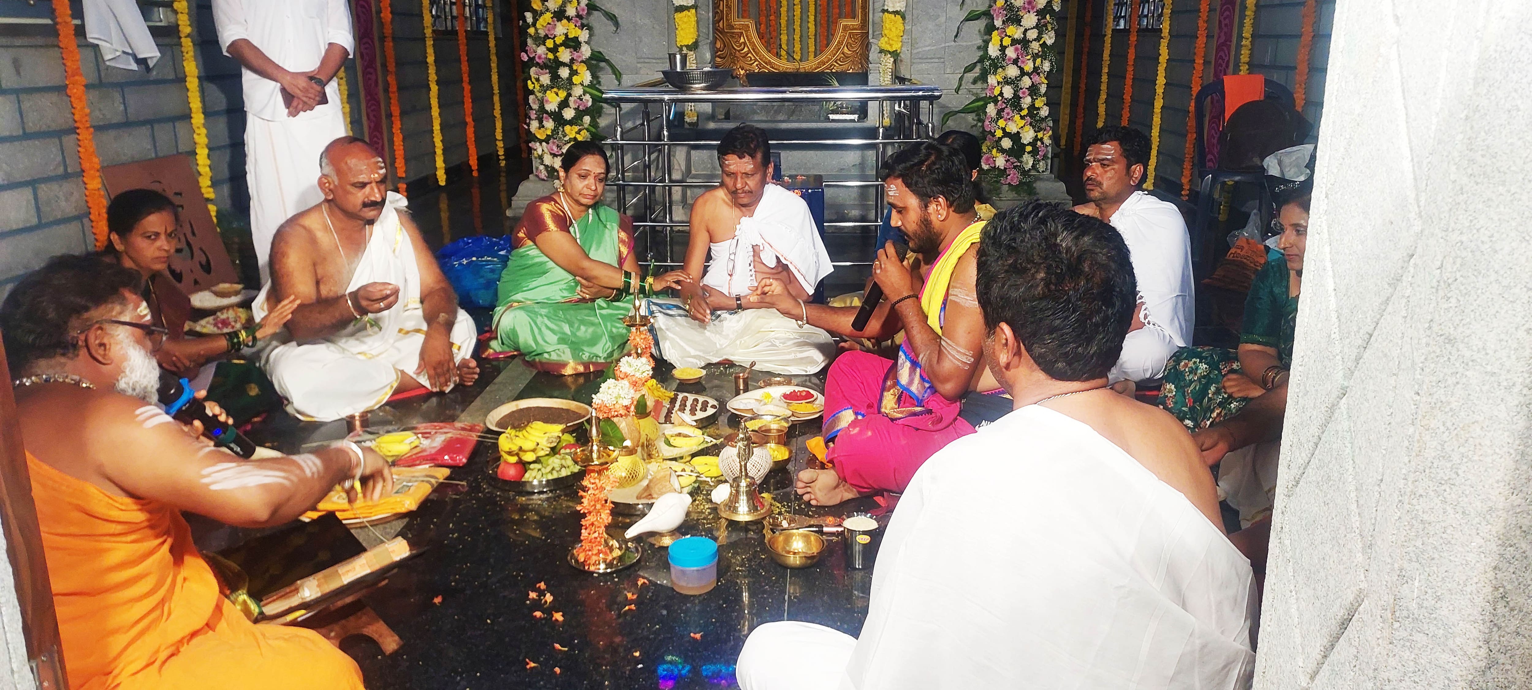 ವರಸಿದ್ಧಿ ವಿನಾಯಕ ದೇವಸ್ಥಾನ ಉದ್ಘಾಟನೆ, ವಿನಾಯಕ ವಿಗ್ರಹ ಪುನರ್ ಪ್ರತಿಷ್ಠಾಪನೆ ಅಂಗವಾಗಿ ಮಂಗಳವಾರ ನಡೆದ ವಿವಿಧ ಧಾರ್ಮಿಕ ಕೈಂಕರ್ಯಗಳಲ್ಲಿ ಬೆಸ್ಕಾಂ ಅಧಿಕಾರಿ ಜಯಣ್ಣ ದಂಪತಿ ಸೇರಿದಂತೆ ಇತರೆ ಅಧಿಕಾರಿಗಳು ಭಾಗವಹಿಸಿ ಪೂಜೆ ಸಲ್ಲಿಸಿದರು.