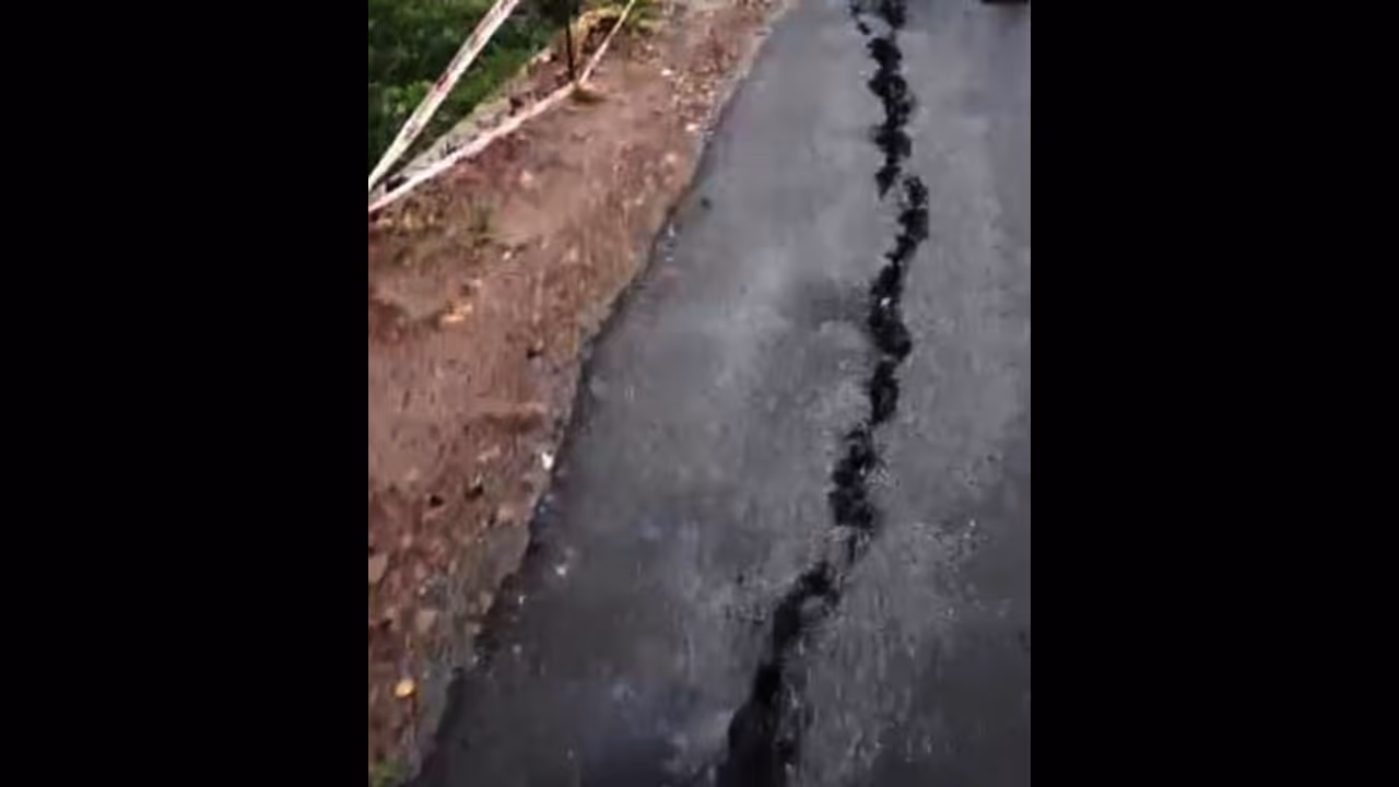 18 ಶ್ರೀ ಚಿತ್ರ 2-ಶೃಂಗೇರಿಯಲ್ಲಿ ಭಾರೀ ಮಳೆಗೆ ರಾಷ್ಟ್ರೀಯ ಹೆದ್ದಾರಿ 169 ರ ನೆಮ್ಮಾರು ಎಸ್ಟೇಟ್ ಬಳಿ ರಸ್ತೆಯಲ್ಲಿ ಬಿರುಕು ಬಿಟ್ಟಿರುವುದು.