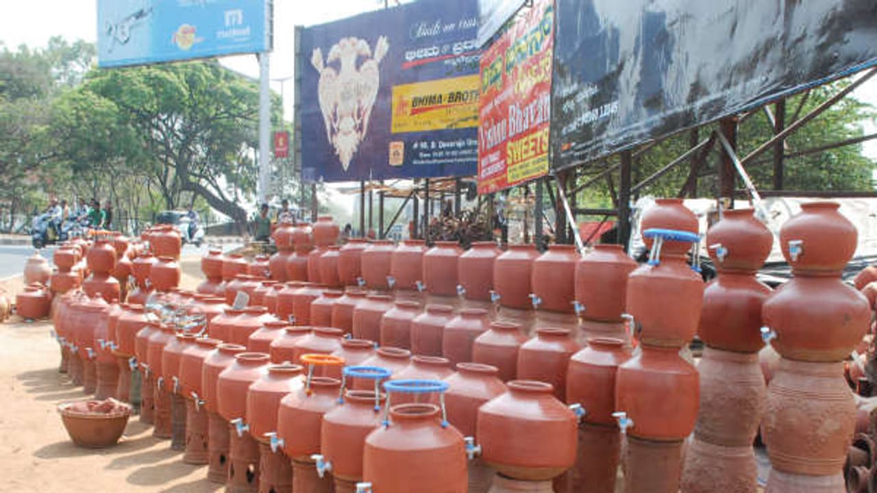 (ಫೋಟೋ ಕ್ಯಾಫ್ಷನ್)ಕುಡಿಯುವ ನೀರಿನ ಮಣ್ಣಿನ ಮಡಿಕೆಗಳು.