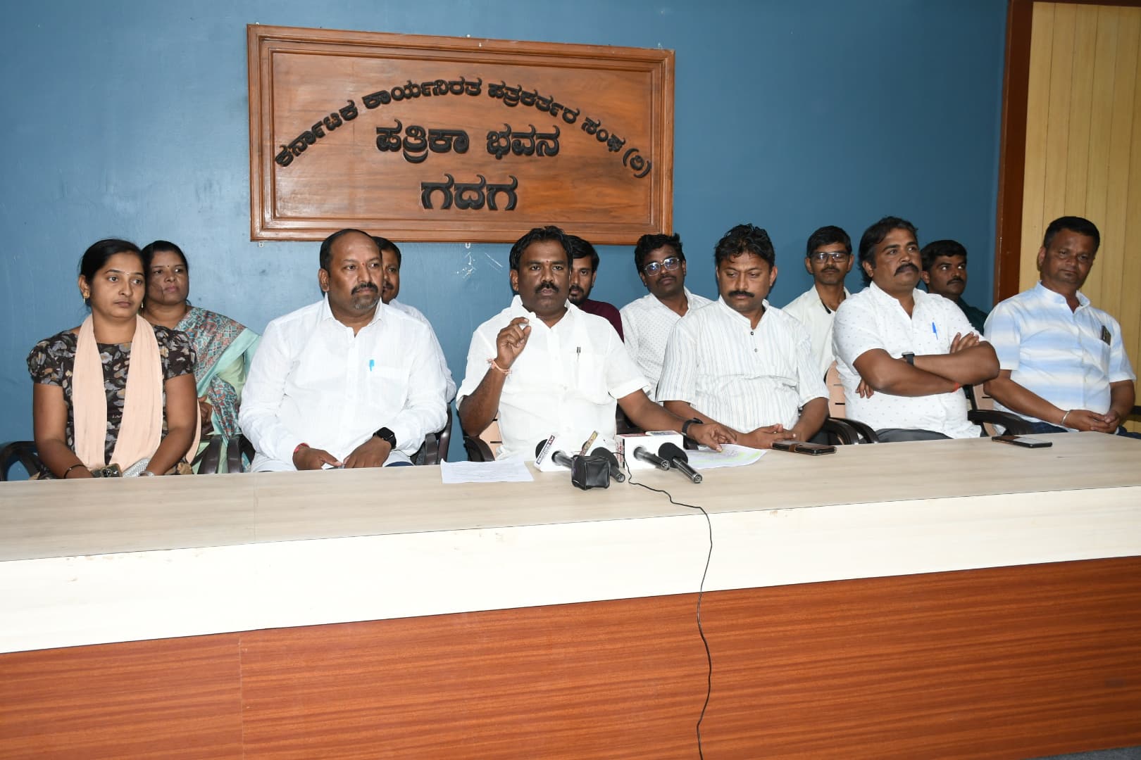 ಸುದ್ದಿಗೋಷ್ಠಿಯಲ್ಲಿ ಶರಣು ಮರೆಗುದ್ದಿ, ಸತೀಶ್ ಸರ್ವಿ, ಯಲ್ಲಪ್ಪ ಹಂಚಿನಾಳ, ವಿಜಯಕುಮಾರ ದೇಸಾಯಿಗೌಡ್ರ, ಗೀತಾ ಮೇಟಿ, ಜ್ಯೋತಿ ಬದ್ದಿನ, ಶಾಂತಗೌಡ ಬರಗೂರ, ಎಸ್.ಬಿ. ಜಗಾಪೂರ, ಅಶೋಕ ಬಂಕಾಪೂರ, ಶಶಿ ಬಲೂಚಿ, ವಿರೂಪಾಕ್ಷಿ ಮುಳಗುಂದ, ಪದ್ಮಾ ತಳಗಲ್, ಶಿಲ್ಪಾ ಹಿರೇಮಠ, ಶ್ರೀದೇವಿ ಗದಗಿನ, ನೂರಜಾನ್ ಕದಾಂಪೂರ, ಭಗತಸಿಂಗ್ ನವಲೂರಕರ್, ಶರಣಬಸಪ್ಪ ಮಡಿವಾಳರ, ಶಿವಾನಂದ ಜಟ್ಟೆಣ್ಣನವರ, ಎಂ.ಎಲ್. ಪಾಟೀಲ ಮುಂತಾದವರು ಉಪಸ್ಥಿತರಿದ್ದರು.ಎಚ್ಕೆ ಕಚೇರಿ ಎದುರು..ಗದಗ ಜಿಲ್ಲಾಧಿಕಾರಿ ಕಛೇರಿ ಮುಂಭಾಗದಲ್ಲಿ ಅತಿಥಿ ಉಪನ್ಯಾಸಕರು ಶಾಂತಯುತವಾಗಿ ಅನಿರ್ದಿಷ್ಟಾವಧಿ ಧರಣಿಗೆ ಮುಂದಾಗಿದ್ದೇವೆ. ಆದರೆ, ಜಿಲ್ಲಾಧಿಕಾರಿ ಕಚೇರಿ ಎದುರು ಧರಣಿಗೆ ಅವಕಾಶ ಸಿಗದಿದ್ದಲ್ಲಿ ಕಾನೂನು ಸಚಿವ ಎಚ್.ಕೆ. ಪಾಟೀಲ ಕಚೇರಿ ಎದುರು ಹೋರಾಟ ನಡೆಸುತ್ತೇವೆ ಎಂದು ರಾಜ್ಯ ಸರ್ಕಾರಿ ಪ್ರಥಮ ದರ್ಜೆ ಕಾಲೇಜುಗಳ ಅತಿಥಿ ಉಪನ್ಯಾಸಕರ ಸಂಘ ರಾಜ್ಯಾಧ್ಯಕ್ಷ ಹನುಮಂತಗೌಡ ಕಲ್ಮನಿ ತಿಳಿಸಿದ್ದಾರೆ.