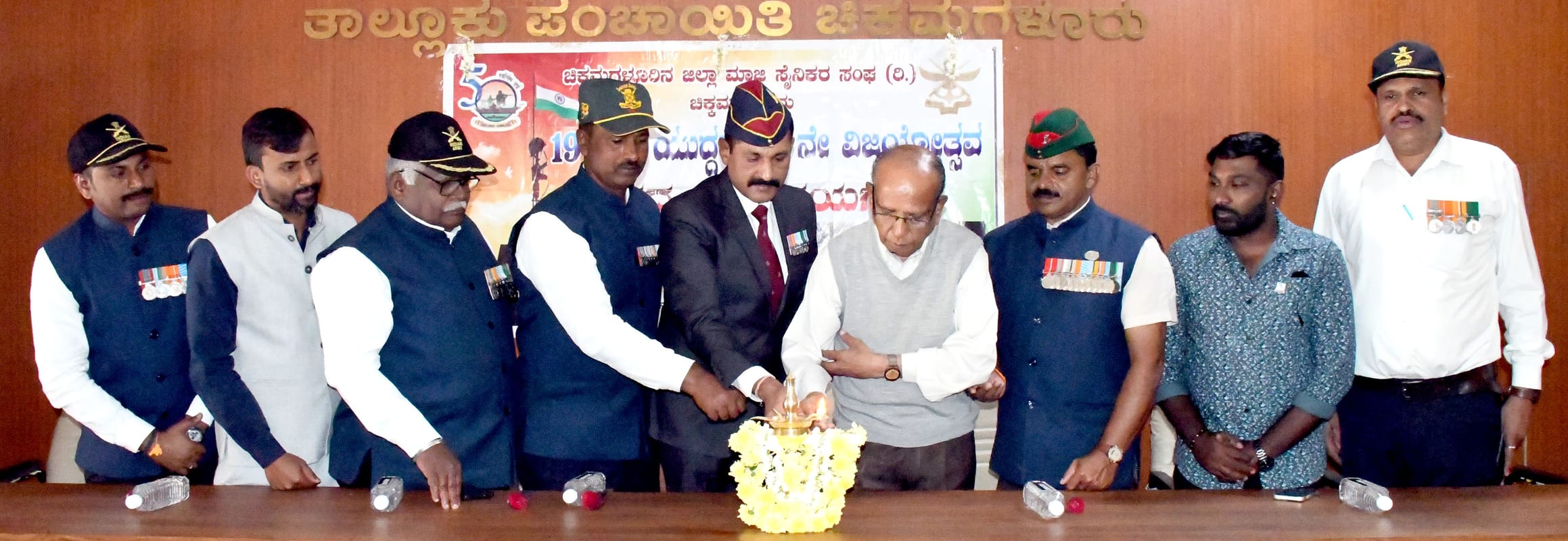 ಇಂಡೋ- ಪಾಕ್ನ 1971ರ ಯುದ್ಧದಲ್ಲಿ ಮೊಟ್ಟ ಮೊದಲ ಬಾರಿಗೆ ಶತ್ರು ದೇಶದ ಸೈನ್ಯಾಧಿಕಾರಿ ಸೇರಿ 93 ಸಾವಿರ ಸೈನಿಕರನ್ನು ಶರಣಾಗತಿಗೊಳಿಸಿದ ಕೀರ್ತಿ ಭಾರತೀಯ ಹೆಮ್ಮೆಯ ಸೈನಿಕರಿಗೆ ಸಲ್ಲುತ್ತದೆ ಎಂದು ಲೆ.ಕರ್ನಲ್ ಹಾಗೂ ಸರ್ಕಾರಿ ವೈದ್ಯ ಡಾ. ರಾಜೀವ್ ಹೇಳಿದರು.ನಗರದ ತಾಲೂಕು ಪಂಚಾಯಿತಿ ಸಭಾಂಗಣದಲ್ಲಿ ಭಾನುವಾರ ಚಿಕ್ಕಮಗಳೂರು ಮಾಜಿ ಸೈನಿಕರ ಸಂಘದಿಂದ ಆಯೋಜಿಸಿದ್ಧ 1971ರ ಯುದ್ಧದ 55ನೇ ವಿಜಯೋತ್ಸವ ಕಾರ್ಯಕ್ರಮವನ್ನು ಉದ್ಘಾಟಿಸಿ ಅವರು ಮಾತನಾಡಿದರು.
