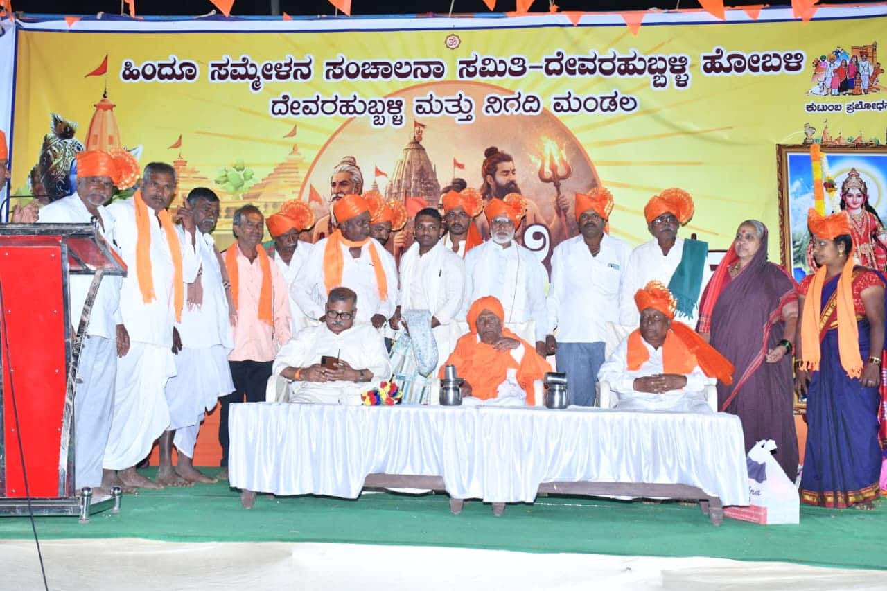 ಹಿಂದೂ ಸಂಚಲನಾ ಸಮಿತಿ ಅಧ್ಯಕ್ಷ ಮಹಾದೇವಪ್ಪ ನೀರಲಗಿ ಅಧ್ಯಕ್ಷತೆ ವಹಿಸಿದ್ದರು. ಮಲ್ಲಿಕಾರ್ಜುನ ಜೋಡಳ್ಳಿ ನಿರೂಪಿಸಿದರು. ಡಾ. ಬಸವರಾಜ್ ಹೊಂಗಲ್ ಸ್ವಾಗತಿಸಿದರು. ಈರಯ್ಯ ಬೆಳ್ಳಕ್ಕಿಮಠ ವಂದಿಸಿದರು. ವಿರಾಟ ಹಿಂದೂ ಸಮಾವೇಶ ನಿಮಿತ್ತ ನಡೆದ ಶೋಭಾಯಾತ್ರೆಯಲ್ಲಿ 50ಕ್ಕೂ ಹೆಚ್ಚು ಕಲಾ ತಂಡಗಳು ಭವ್ಯ ಮೆರವಣಿಗೆಯಲ್ಲಿ ಪಾಲ್ಗೊಂಡಿದ್ದವು. ಡೊಳ್ಳು ಕುಣಿತ, ವೀರಗಾಸೆ, ಜಗ್ಗಲಗಿ, ಕರಡಿಮಜಲು,ಹೆಜ್ಜೆಮೇಳ, ಲಂಬಾಣಿ ನೃತ್ಯ ಸೇರಿದಂತೆ ಅನೇಕ ಕಲಾ ಪ್ರಕಾರಗಳು ಪ್ರದರ್ಶನಗೊಂಡವು. ಕೌಟುಂಬಿಕ ಸಾಮರಸ್ಯ ದೇಶದ ದೊಡ್ಡ ಶಕ್ತಿ. ಇಂದು ಅದು ನಶಿಸುತ್ತಿರುವುದು ದುರದೃಷ್ಟಕರ. ಇದನ್ನು ಮತ್ತೆ ಕಾಪಾಡಿಕೊಳ್ಳಬೇಕಿದೆ. ಪರಿಸರ ಸಂರಕ್ಷಣೆ ನಮ್ಮೆಲ್ಲರ ಆಧ್ಯತೆಯಾಗಬೇಕು. ನೂರು ವರ್ಷಗಳನ್ನು ಪೂರೈಸಿದ ರಾಷ್ಟ್ರೀಯ ಸ್ವಯಂ ಸೇವಕ ಸಂಘ ಹೆಮ್ಮರವಾಗಿ ಬೆಳೆದಿದ್ದು ದೇಶ ಕಟ್ಟುವ ಕಾರ್ಯಕ್ಕೆ ಸದಾ ಅಗ್ರಪಂಕ್ತಿಯಲ್ಲಿ ನಿಲ್ಲಲಿದೆ.ಮಂಗೇಶ ಭೇಂಡೆ, ಆರ್ಎಸ್ಎಸ್ ಪ್ರಮುಖರು
