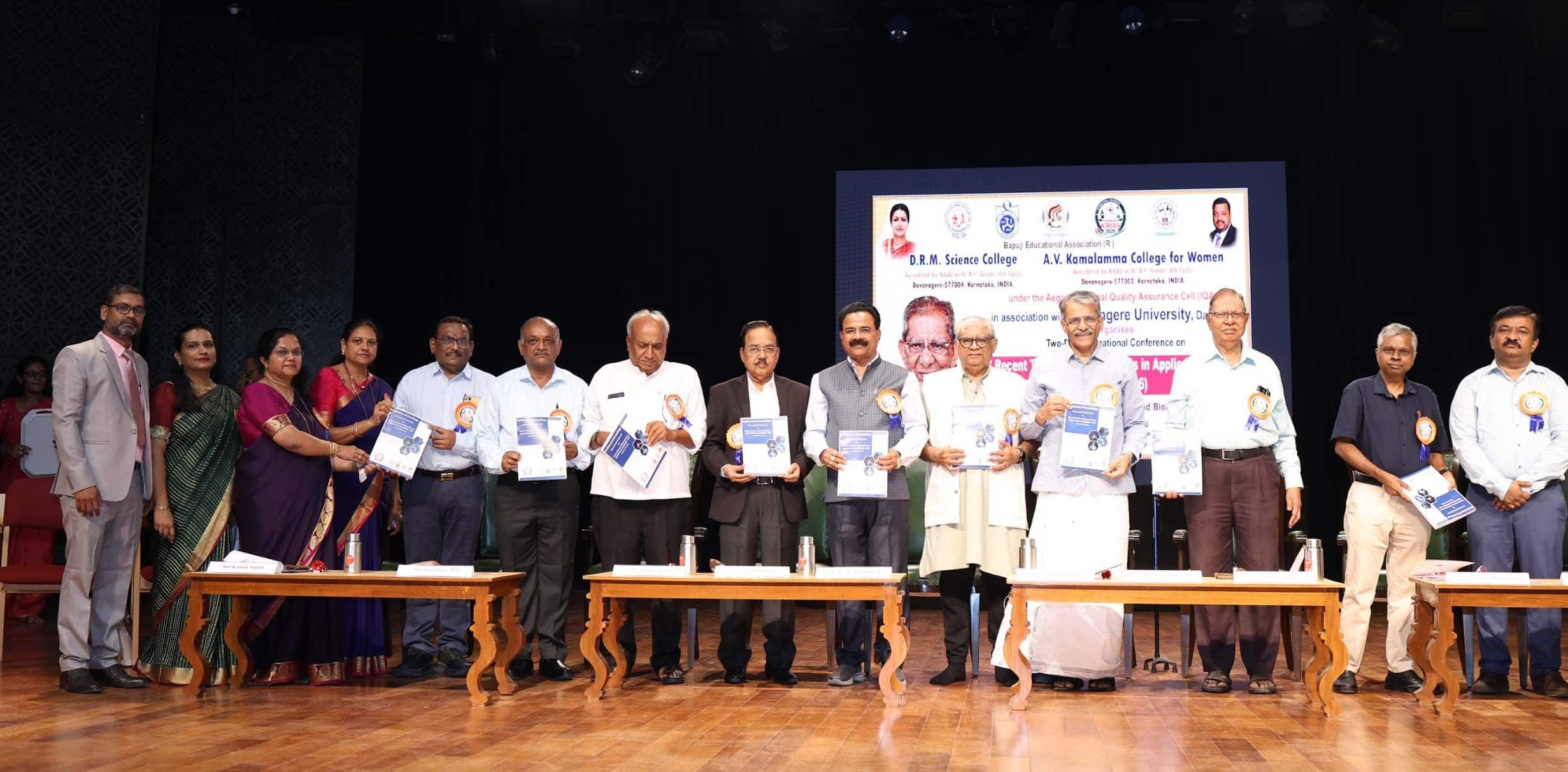 ನಗರದ ಜೆಜೆಎಂ ಮೆಡಿಕಲ್ ಕಾಲೇಜಿನ ಬಾಪೂಜಿ ಸಭಾಂಗಣದಲ್ಲಿ ಶನಿವಾರ ಧ.ರಾ.ಮ ವಿಜ್ಞಾನ ಕಾಲೇಜು ಹಾಗೂ ಎ ವಿ ಕಮಲಮ್ಮ ಮಹಿಳಾ ಕಾಲೇಜು, ದಾವಣಗೆರೆ ವಿಶ್ವವಿದ್ಯಾನಿಲಯದ ಸಹಯೋಗದಲ್ಲಿ "ಅನ್ವಯ ವಿಜ್ಞಾನ ಕ್ಷೇತ್ರದಲ್ಲಿನ ಇತ್ತೀಚಿನ ಪ್ರವೃತ್ತಿಗಳು ಮತ್ತು ಹೊಸ ಆವಿಷ್ಕಾರಗಳು " ಎಂಬ ಶೀರ್ಷಿಕೆಯಡಿ ಆಯೋಜಿಸಲಾದ ಎರಡು ದಿನಗಳ ಅಂತರರಾಷ್ಟ್ರೀಯ ವಿಜ್ಞಾನ ಸಮಾವೇಶದ ಸಮಾರೋಪ ಸಮಾರಂಭದ ಅಧ್ಯಕ್ಷತೆವಹಿಸಿ ಅವರು ಮಾತನಾಡಿದರು. ಸಮಾರೋಪ ನುಡಿಗಳನ್ನು ಆಡಿದ ಡಾ.ಎಂ.ಗೋವಿಂದಪ್ಪ, ಈ ವಿಜ್ಞಾನ ಸಮಾವೇಶಕ್ಕೆ ಹೆಚ್ಚಿನ ಸಂಖ್ಯೆಯಲ್ಲಿ ವಿವಿಧ ವಿಶ್ವವಿದ್ಯಾನಿಲಯಗಳು ಹಾಗೂ ಕಾಲೇಜುಗಳಿಂದ ಆಗಮಿಸಿದ ಸಂಪನ್ಮೂಲ ವ್ಯಕ್ತಿಗಳು, ಸಂಶೋಧನಾ ವಿದ್ಯಾರ್ಥಿಗಳು ಹೆಚ್ಚಿನ ಮೆರಗು ತಂದಿರುತ್ತಾರೆಂದು ಸಂತೋಷ ವ್ಯಕ್ತಪಡಿಸಿ, ಇಂದಿನ ಅಂತರರಾಷ್ಟ್ರೀಯ ಸಮಾವೇಶಕ್ಕೆ ಒಟ್ಟು 202 ಸಂಶೋಧನಾ ಲೇಖನಗಳು ಬಂದಿದ್ದು, ಐಎಸ್ಬಿಎನ್ ಅಡಿಯಲ್ಲಿ ಪುಸ್ತಕದ ರೂಪದಲ್ಲಿ ಪ್ರಕಟಗೊಂಡಿರುತ್ತದೆ ಎಂದು ತಿಳಿಸಿದರು.ದಾವಿವಿ ಭೌತಶಾಸ್ತ್ರ ಅಧ್ಯಯನ ಕೇಂದ್ರದ ಪ್ರಾಧ್ಯಾಪಕ ಡಾ.ಎಂ.ಎನ್.ಕಳಸದ್, ಧರಾಮ ಕಾಲೇಜಿನ ಪ್ರಾಚಾರ್ಯೆ ರೂಪಶ್ರೀ, ಎವಿಕೆ ಮಹಿಳಾ ಕಾಲೇಜಿನ ಪ್ರಾಚಾರ್ಯೆ ಕಮಲಾ ಸೊಪ್ಪಿನ, ವಿವಿಧ ವಿಭಾಗಗಳ ಮುಖ್ಯಸ್ಥರು, ವಿದ್ಯಾರ್ಥಿಗಳು, ಸಂಶೋಧನಾರ್ಥಿಗಳು ಇತರರು ಇದ್ದರು. ಟಿ.ದಿವ್ಯ ಕಾರ್ಯಕ್ರಮ ನಿರೂಪಿಸಿದರು. ಡಾ.ದಿವ್ಯಶ್ರೀ ವಿಜೇತ ಸ್ಪರ್ದಾಳುಗಳ ಪಟ್ಟಿ ವಾಚನ ಮಾಡಿದರು. ಡಾ. ಬಿ.ಜೆ.ರುದ್ರೇಶ್ ಸ್ವಾಗತಿಸಿದರೆ, ಡಾ.ಟಿ.ಮಂಜು ರಾಜ್ ವಂದಿಸಿದರು. ಸಂಶೋಧನಾ ಲೇಖನಗಳನ್ನು ಉತ್ತಮವಾಗಿ ಪ್ರಸ್ತುತಪಡಿಸಿದವರಿಗೆ ವಿಶೇಷ ಬಹುಮಾನಗಳನ್ನು ನೀಡಿ ಅಭಿನಂದಿಸಲಾಯಿತು.