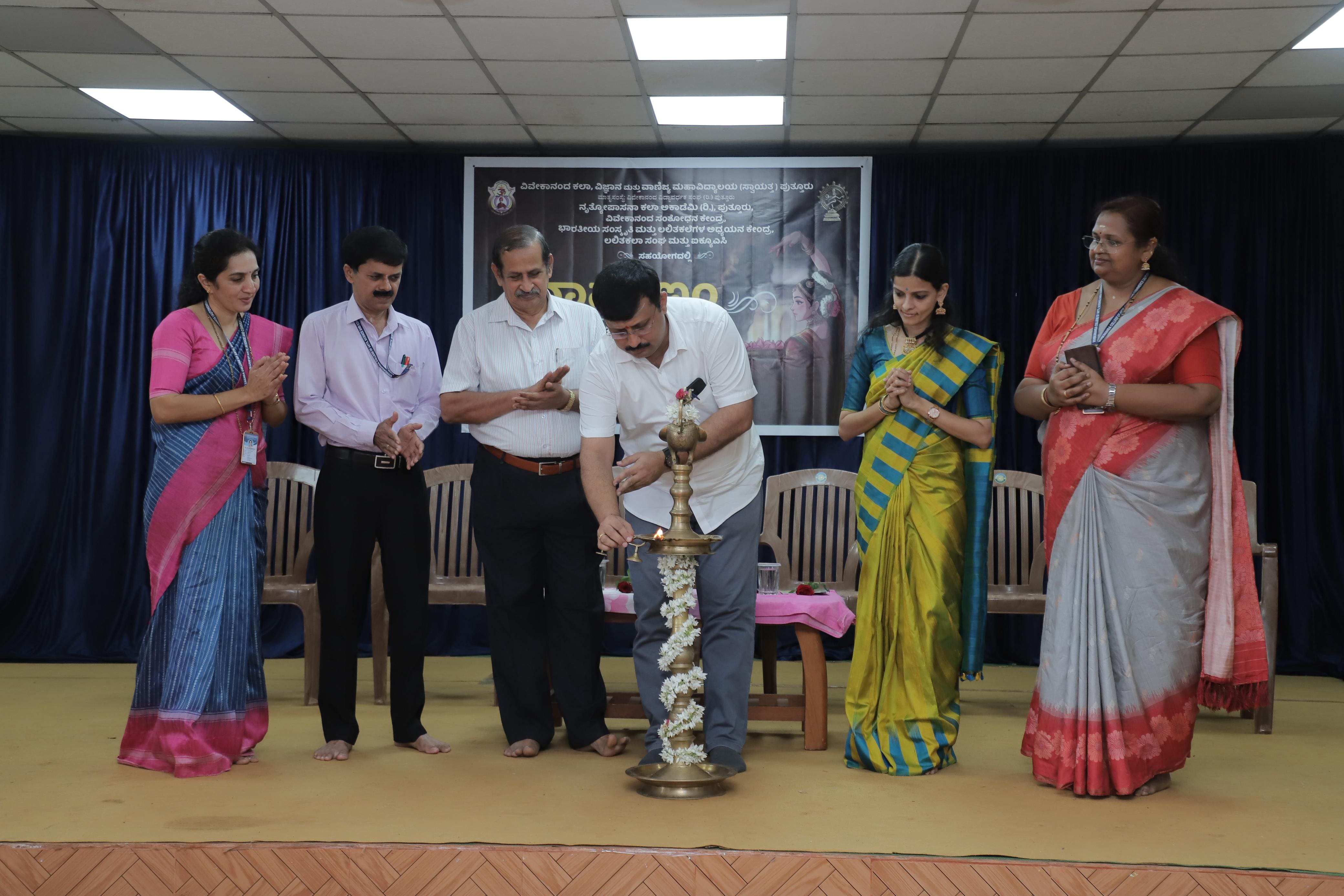 ಕಾರ್ಯಕ್ರಮದಲ್ಲಿ ಉಪಸ್ಥಿತರಿದ್ದು ಮಾತನಾಡಿದ ನೃತ್ಯೋಪಾಸನಾ ಕಲಾ ಅಕಾಡೆಮಿಯ ನಿರ್ದೇಶಕಿ ವಿದುಷಿ ಶಾಲಿನಿ ಆತ್ಮಭೂಷಣ, ಲಲಿತ ಕಲೆಗಳ ಬಗ್ಗೆ ಕಾರ್ಯಗಾರಗಳು ನಡೆದು ಅದರಿಂದ ವಿದ್ಯಾರ್ಥಿಗಳು, ಆಸಕ್ತರು ಪ್ರಯೋಜನ ಪಡೆದುಕೊಂಡಾಗ ಯೋಜಿಸಿದವರ, ಕಲಾವಿದರ ಆಶಯ ಪೂರ್ಣವಾಗುತ್ತದೆ. ಕಲಿಕೆಯ ಸಂದರ್ಭದಲ್ಲಿ ಹಿರಿಯರ ಜೊತೆಗೆ ಇದ್ದು ಕಲಿತಾಗ, ಅಭ್ಯಾಸ ಮಾಡಿದಾಗ ನಮ್ಮದು ಒಳ್ಳೆಯ ಗುಣಮಟ್ಟದ ಅಧ್ಯಯನವಾಗಬಲ್ಲದು ಎಂದರು.ಕಾಲೇಜಿನ ಆಡಳಿತ ಮಂಡಳಿಯ ಅಧ್ಯಕ್ಷ ಡಾ. ಶ್ರೀಪತಿ ಕಲ್ಲೂರಾಯ ಮತ್ತು ಪ್ರಾಂಶುಪಾಲ ಪ್ರೊ. ಶ್ರೀಕೃಷ್ಣ ಗಣರಾಜ ಭಟ್ ಶುಭ ಹಾರೈಸಿದರು. ಈ ಸಂದರ್ಭದಲ್ಲಿ ವಿದುಷಿ ಶಾಲಿನಿ ಆತ್ಮಭೂಷಣ ಇವರನ್ನು ಸನ್ಮಾನಿಸಲಾಯಿತು. ಬಳಿಕ ನೃತ್ಯೋಪಾಸನಾ ಕಲಾ ಅಕಾಡೆಮಿಯ ಮತ್ತು ನೃತ್ಯವನ್ನು ಅಭ್ಯಸಿಸಿದ ಕಾಲೇಜಿನ ಆಯ್ದ ವಿದ್ಯಾರ್ಥಿಗಳಿಂದ ನವರಸಗಳ ಪ್ರಸ್ತುತಿಯ ಕುರಿತಾದ ಭರತನಾಟ್ಯ ಕಾರ್ಯಾಗಾರ ನಡೆಯಿತು.ಕಾರ್ಯಾಗಾರದಲ್ಲಿ ಹಾಡುಗಾರಿಕೆಯಲ್ಲಿ ಡಾ. ನಿಷಿತಾ ಪುತ್ತೂರು, ಮೃದಂಗದಲ್ಲಿ ವಿದ್ವಾನ್ ಬಾಲಕೃಷ್ಣ ಹೊಸಮನೆ ಹಾಗೂ ನಟುವಾಂಗದಲ್ಲಿ ವಿದುಷಿ ಶಾಲಿನಿ ಆತ್ಮಭೂಷಣ ಇವರು ಸಹಕರಿಸಿದರು. ಕಾರ್ಯಕ್ರಮವನ್ನು ವಿವೇಕಾನಂದ ಸಂಶೋಧನಾ ಕೇಂದ್ರದ ನಿರ್ದೇಶಕಿ ಹಾಗೂ ಸ್ನಾತಕೋತ್ತರ ವಿಭಾಗದ ಡೀನ್ ಡಾ. ವಿಜಯ ಸರಸ್ವತಿ.ಬಿ ಸ್ವಾಗತಿಸಿದರು. ಸಮಾಜಶಾಸ್ತ್ರ ವಿಭಾಗದ ಮುಖ್ಯಸ್ಥೆ ಮತ್ತು ಭಾರತೀಯ ಸಂಸ್ಕೃತಿ ಮತ್ತು ಲಲಿತ ಕಲೆಗಳ ಅಧ್ಯಯನ ಕೇಂದ್ರದ ಸಂಯೋಜಕಿ ಡಾ. ವಿದ್ಯಾ ಎಸ್ ವಂದಿಸಿದರು. ಕಾಲೇಜಿನ ವಿದ್ಯಾರ್ಥಿ ಸಂಘದ ಜತೆ ಕಾರ್ಯದರ್ಶಿ ಹಂಪನಾ ನಿರೂಪಿಸಿದರು.