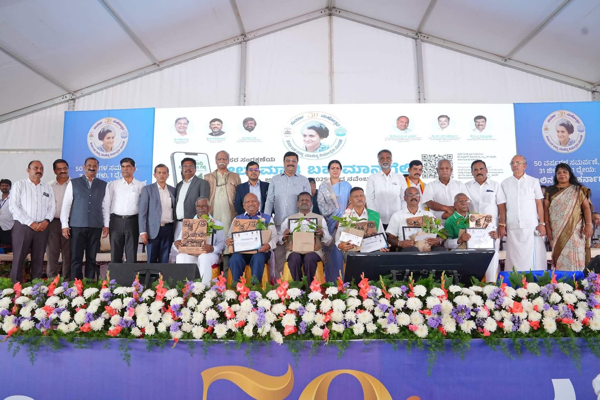 ಪೌರಕಾರ್ಮಿಕರಿಗೆ ಪರಿಸರಸ್ನೇಹಿ ಪ್ರಶಸ್ತಿ:ದಾವಣಗೆರೆಯ ವಾರ್ಡ್ ನಂ.24ರ ಕರಿಬಸಮ್ಮ ಮಂಜಪ್ಪ, ವಾರ್ಡ್ ನಂ.5ರ ವಸಂತಮ್ಮ ರಾಯಪ್ಪ ಮತ್ತು ವಾರ್ಡ್ ನಂ.20ರ ಜಯಮ್ಮ ಪ್ರಭು ಹಾಗೂ ಹಾವೇರಿ ಜಿಲ್ಲೆಯ ನಿಂಗಪ್ಪ ಶೇಖಪ್ಪ ಗಡ್ಡಿ, ರಾಣೇಬೆನ್ನೂರಿನ ನಾಗಪ್ಪ ಪೂಜಾರಾ, ಬ್ಯಾಡಗಿ ಪುರಸಭೆಯ ಗಂಗಮಾಳವ್ವ ಅಂತರವಳ್ಳಿ ಅವರಿಗೆ ಪರಿಸರಸ್ನೇಹಿ ಪ್ರಶಸ್ತಿ ನೀಡಿ ಗೌರವಿಸಲಾಗಿದೆ. 5ಕೆಡಿವಿಜಿ5-ದಾವಣಗೆರೆಯಲ್ಲಿ ಬುಧವಾರ ದಾವಣಗೆರೆ-ಹಾವೇರಿ ಜಿಲ್ಲಾಡಳಿತ, ಕರ್ನಾಟಕ ರಾಜ್ಯ ಮಾಲಿನ್ಯ ನಿಯಂತ್ರಣ ಮಂಡಳಿ ಸಹಯೋಗದಲ್ಲಿ ಮಂಡಳಿ ಸ್ಥಾಪನೆಯಾಗಿ 50 ವರ್ಷದ ಸುವರ್ಣ ಮಹೋತ್ಸವ ಕಾರ್ಯಕ್ರಮ ಉದ್ಘಾಟಿಸಿದ ಸಂಸದೆ ಡಾ.ಪ್ರಭಾ ಮಲ್ಲಿಕಾರ್ಜುನ. ಮಂಡಳಿ ಅಧ್ಯಕ್ಷ ಪಿ.ಎಂ.ನರೇಂದ್ರಸ್ವಾಮಿ, ಶಾಸಕ ಕೆ.ಎಸ್.ಬಸವಂತಪ್ಪ ಇತರರು ಇದ್ದರು.