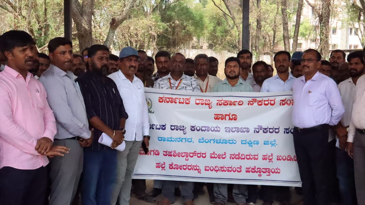 ಸರ್ಕಾರಿ ನೌಕರರ ಸಂಘದ ಜಿಲ್ಲಾಧ್ಯಕ್ಷ ಕೆ.ಸತೀಶ್ ರವರ ನೇತೃತ್ವದಲ್ಲಿ ಜಿಲ್ಲಾ ಶಾಖೆಯ ಅಧ್ಯಕ್ಷ ಎಂ.ಹರ್ಷ, ಗೌರವಾಧ್ಯಕ್ಷ ಎ.ಎಸ್.ಧರೇಶ್ ಗೌಡ, ಪ್ರಧಾನ ಕಾರ್ಯದರ್ಶಿ ಎ.ಪಿ.ಯುವರಾಜ್ ಸೇರಿದಂತೆ ಪದಾಧಿಕಾರಿಗಳು ಅಪರ ಜಿಲ್ಲಾಧಿಕಾರಿ ಚಂದ್ರಯ್ಯ ಅವರಿಗೆ ಮನವಿ ಸಲ್ಲಿಸಿ ತಾಲೂಕು ಕಚೇರಿಯಲ್ಲಿ ರಕ್ಷಣೆ ಒದಗಿಸಲು ಸಾಧ್ಯವಾಗದಿದ್ದರೆ ಎಲ್ಲ ಸಿಬ್ಬಂದಿ ವರ್ಗದವರನ್ನು ಸಾಮೂಹಿಕವಾಗಿ ವರ್ಗಾವಣೆ ಮಾಡುವಂತೆ ಒತ್ತಾಯಿಸಿದರು.ಮಾರ್ಚ್ 6ರಂದು ಮಾಗಡಿ ತಾಲೂಕು ಕಸಬಾ ಹೋಬಳಿ ಹರ್ತಿ ಗ್ರಾಮದ ಶ್ರೀ ಮಾರಮ್ಮ ದೇವಾಲಯದ ವಾರ್ಷಿಕ ಜಾತ್ರಾ ಮಹೋತ್ಸವದ ಅಗ್ನಿಕೊಂಡ ಕಾರ್ಯಕ್ರಮದ ಸಂಬಂಧ ಅರ್ಚಕರು ಹಾಗೂ ಕೆಲ ಗ್ರಾಮಸ್ಥರ ಸಮಕ್ಷಮ ತಹಸೀಲ್ದಾರ್ ಸಭೆ ನಡೆಸುತ್ತಿದ್ದರು.