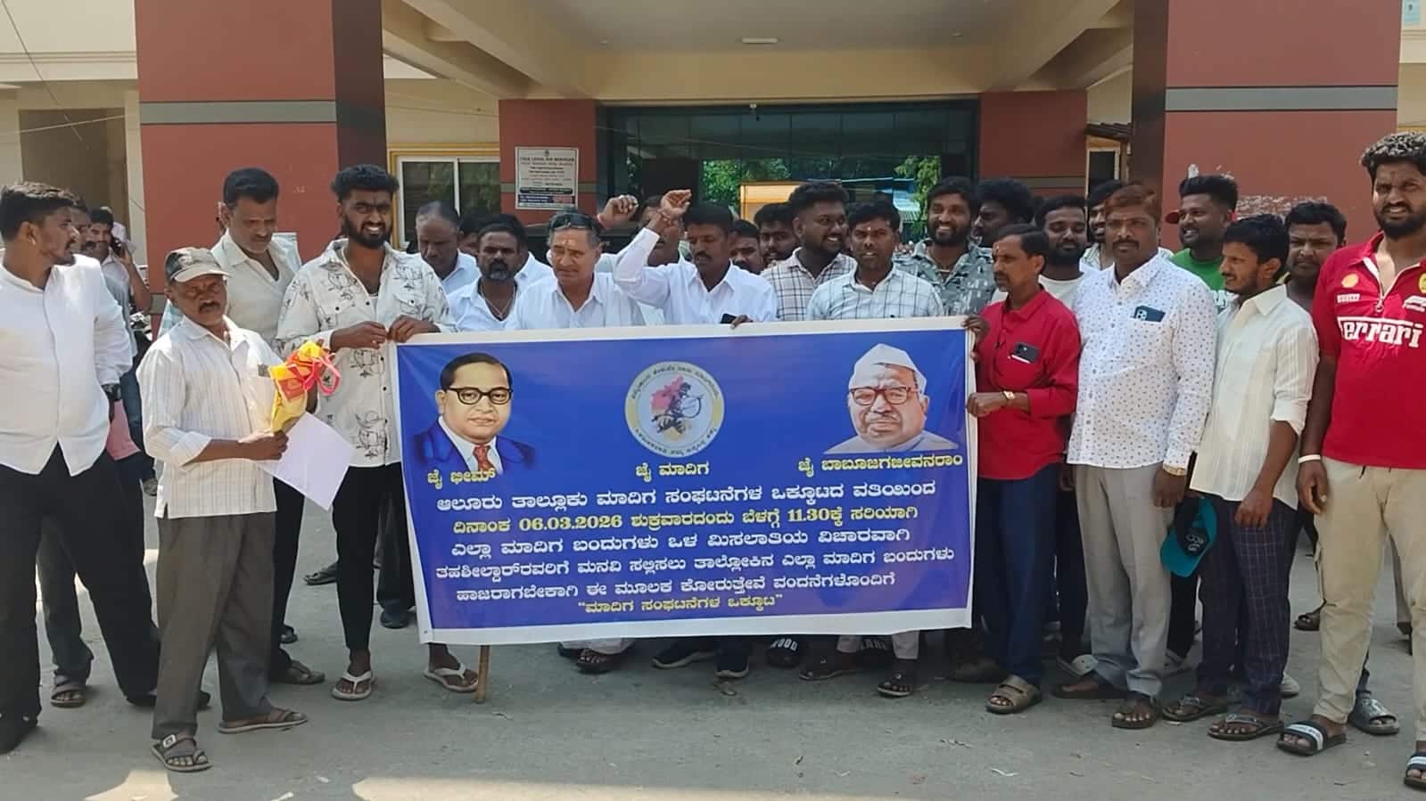 ರಾಜ್ಯಸರ್ಕಾರವು ಜಾರಿಗೆ ತಂದಿರುವ ಶೇಕಡ 17ರ ಮೀಸಲಾತಿಯಲ್ಲಿ ಪರಿಶಿಷ್ಟ ಜಾತಿಯ ಎಡಗೈ ಸಮುದಾಯವಾದ ಮಾದಿಗ ಸಮುದಾಯಕ್ಕೆ ಪ್ರಸ್ತುತ ಇರುವ ಮೀಸಲಾತಿಯಲ್ಲಿ ಒಳ ಮೀಸಲಾತಿಯನ್ನು ನಿಗದಿಪಡಿಸಿದ ನಂತರ ಸರ್ಕಾರಿ ಹುದ್ದೆಗಳಲ್ಲಿ ನೇಮಕಾತಿ ಪ್ರಕ್ರಿಯೆಯನ್ನು ಆರಂಭಿಸಬೇಕು ಎಂದು ಆಗ್ರಹಿಸಿ ಆಲೂರು ತಾಲೂಕು ಮಾದಿಗ ದಂಡೋರ ಮೀಸಲಾತಿ ಹೋರಾಟ ಸಮಿತಿ ಪದಾಧಿಕಾರಿಗಳು ಶುಕ್ರವಾರ ಪಟ್ಟಣದಲ್ಲಿ ಪ್ರತಿಭಟನೆ ನಡೆಸಿ ಉಪ ತಹಸೀಲ್ದಾರ್ ಅಂಕೇಗೌಡರಿಗೆ ಮನವಿ ಪತ್ರ ಸಲ್ಲಿಸಿದರು.