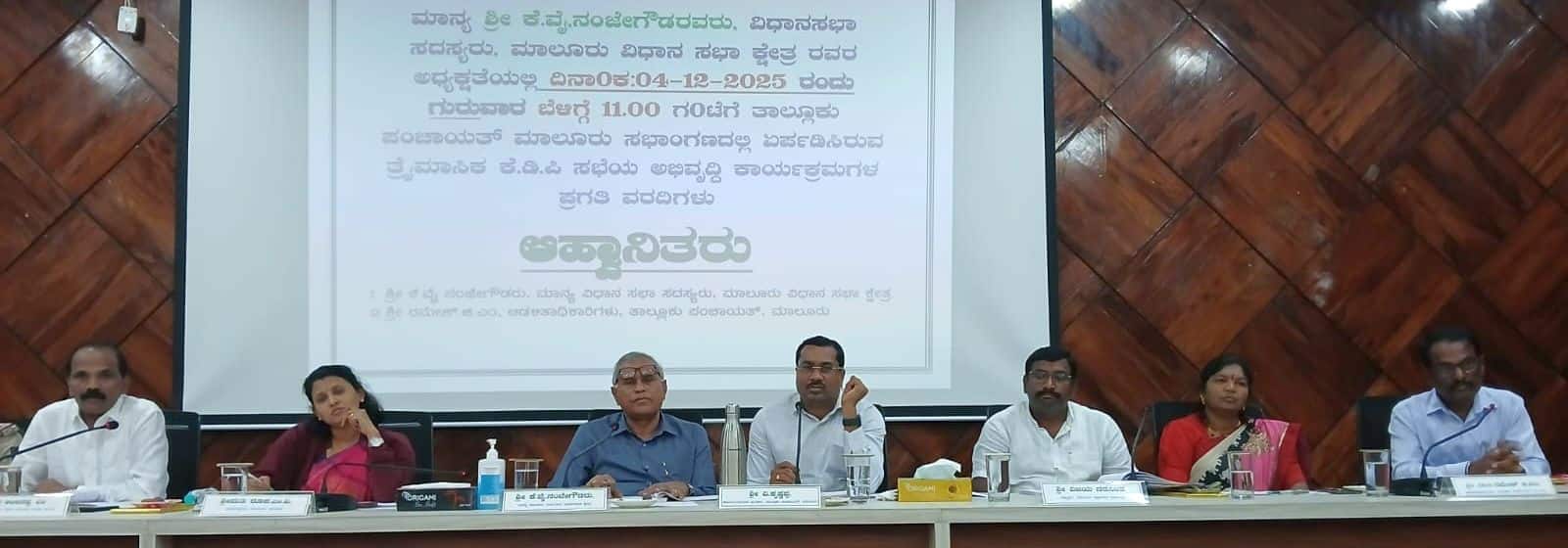 ಶಿರ್ಷಿಕೆ- 5ಕೆ.ಎಂ.ಎಲ್.ಆರ್.3-------- ಮಾಲೂರು ತಾಪಂ ಸಭಾಂಗಣದಲ್ಲಿ ಹಮ್ಮಿಕೊಂಡಿದ್ದ ತಾಲೂಕು ಮಟ್ಟದ ವಿವಿಧ ಇಲಾಖೆಗಳ ತ್ರೈಮಾಸಿಕ ಪ್ರಗತಿ ಪರಿಶೀಲನಾ ಸಭೆಯ ಶಾಸಕ ಕೆ.ವೈ.ನಂಜೇಗೌಡ ಅಧ್ಯಕ್ಷತೆಯಲ್ಲಿ ನಡೆಯಿತು.