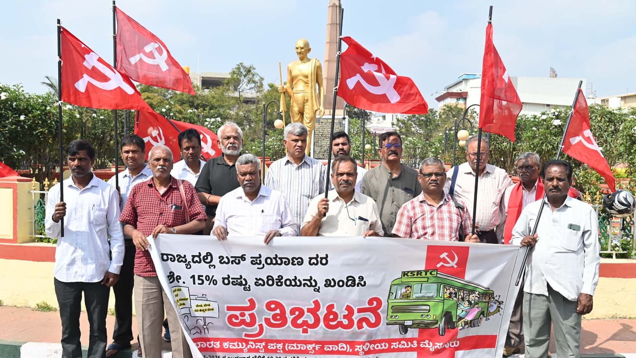 ಕನ್ನಡಪ್ರಭ ವಾರ್ತೆ ಮೈಸೂರುರಾಜ್ಯ ಸಾರಿಗೆ ಬಸ್ ಗಳ ಪ್ರಯಾಣ ದರ ಹೆಚ್ಚಳ ವಿರೋಧಿಸಿ ಭಾರತ ಕಮ್ಯುನಿಸ್ಟ್ ಪಕ್ಷ (ಮಾರ್ಕ್ಸ್ ವಾದಿ) ನಗರ ಸ್ಥಳೀಯ ಸಮಿತಿಯು ಗಾಂಧಿಚೌಕದಲ್ಲಿ ಪ್ರತಿಭಟಿಸಿದರು.ರಾಜ್ಯದ ನಾಲ್ಕು ಸಾರಿಗೆ ನಿಗಮಗಳ ವ್ಯಾಪ್ತಿಯಲ್ಲಿ ಪ್ರಯಾಣಿಕರ ಸಾರಿಗೆ ದರಗಳು ಶೇ. 15ರಷ್ಟು ಹೆಚ್ಚಿಸಿರುವ ರಾಜ್ಯ ಸರ್ಕಾರದ ಕ್ರಮವನ್ನು ಸಿಪಿಐ ಖಂಡಿಸುತ್ತದೆ. ಡೀಸೆಲ್ ದರ ಹೆಚ್ಚಳ ಮತ್ತು ಸಿಬ್ಬಂದಿ ವೆಚ್ಚ ಹೆಚ್ಚಳದ ನೆಪದಲ್ಲಿ ದರ ಏರಿಸಿರುವುದು ಅಪ್ರಜಾಸತ್ತಾತ್ಮಕ ಮತ್ತು ಅವೈಜ್ಞಾನಿಕ ಎಂದು ಅವರು ದೂರಿದರು.ಡೀಸೆಲ್ ದರ ಹೆಚ್ಚಾಗಿದೆ ಎನ್ನು ಸರ್ಕಾರ, ಡೀಸೆಲ್ ದರ ಇಳಿದಾಗ ಎಂದಾದರೂ ಬಸ್ ಪ್ರಯಾಣ ದರ ಕಡಿಮೆ ಮಾಡಿದೆಯೇ? ಅದಕ್ಕಿಂತ ಮುಖ್ಯವಾಗಿ ಸಾರ್ವನಿಕ ಸಾರಿಗೆಯ ಡೀಸೆಲ್ ದರವನ್ನು ಕಡಿಮೆ ಇಡಬೇಕಾದ್ದು ಸರ್ಕಾರದ ಜವಾಬ್ದಾರಿ. ವಿಪರ್ಯಾಸವೆಂದರೆ ಸಾರಿಗೆ ನಿಗಮಗಳಿಗೆ ಪೂರೈಸುವ ಡೀಸೆಲ್ದರವು ಮುಕ್ತ ಮಾರುಕಟ್ಟೆ ದರಗಳಿಗಿಂತ ದುಬಾರಿಯಾಗಿದೆ ಎಂದು ಅವರು ಆರೋಪಿಸಿದರು.ಸರ್ಕಾರಕ್ಕೆ ನಿಜಕ್ಕೂ ವೆಚ್ಚ ಕಡಿಮೆ ಮಾಡಬೇಕೆಂದಿದ್ದರೆ ಸಾರಿಗೆ ನಿಗಮಗಳಿಗೆ ಪೂರೈಸುವ ಡೀಸೆಲ್ ದರವು ಮುಕ್ತ ಮಾರುಕಟ್ಟೆ ದರಕ್ಕಿಂತ ದುಬಾರಿಯಾಗಿದೆ. ಸರ್ಕಾರಕ್ಕೆ ನಿಜಕ್ಕೂ ವೆಚ್ಚ ಕಡಿಮೆ ಮಾಡಬೇಕೆಂದಿದ್ದರೆ ಸಾರಿಗೆ ನಿಗಮಕ್ಕೆ ಪೂರೈಸುವ ಡೀಸೆಲ್ ದರವನ್ನು ಸಬ್ಸಿಡಿ ದರದಲ್ಲಿ ಪೂರೈಸಬೇಕು ಅಥವಾ ಮುಕ್ತ ಮಾರುಕಟ್ಟೆ ದರಗಳಲ್ಲಾದರೂ ಪೂರೈಸಬೇಕು ಎಂದು ಅವರು ಆಗ್ರಹಿಸಿದರು.ಆದ್ದರಿಂದ ಶೇ. 15ರ ದರ ಹೆಚ್ಚಳಕ್ಕೆ ಡೀಸೇಲ್ ದರ ಹೆಚ್ಚಳ ಕಾರಣ ಎನ್ನುವುದು ಸುಳ್ಳು ನೆಪ. ಸಿಬ್ಬಂದಿ ವೆಚ್ಚ ಹೆಚ್ಚಾಗಿರುವುದು ಮತ್ತೊಂದು ಕಾರಣ ಎನ್ನಲಾಗಿದೆ. ಈಗಾಗಲೇ ನಾಲ್ಕು ನಿಗಮಗಳಲ್ಲಿ ಸಿಬ್ಬಂದಿಗೆ ಸುಮಾರು 3 ವರ್ಷಗಳ ವೇತನ ಬಾಕಿ ನೀಡಬೇಕಿದೆ ಮತ್ತು ಹೊಸ ವೇತನ ಒಪ್ಪಂದ ಮಾಡಬೇಕಿದೆ ಎಂದರು.ಸಾರಿಗೆ ನಿಗಮಗಳ ನಷ್ಟ ಕಡಿಮೆ ಮಾಡಲು ಸಾರ್ವಜನಿಕರ, ರಾಜಕೀಯ ಪಕ್ಷಗಳ ಸಲಹೆಗಳನ್ನು ಆಡಳಿತ ವರ್ಗ ಪಡೆಯಬಹುದು. ಆಡಳಿತಾತ್ಮಕ ವಿಧಾನಗಳಲ್ಲಿ ಸಾಕಷ್ಟು ನಷ್ಟ ಕಡಿಮೆ ಮಾಡಬಹುದು. ಪ್ರಯಾಣಿಕರ ಸಾರಿಗೆ ದರ ಹೆಚ್ಚಳ ಉತ್ತಮ ಮಾರ್ಗವಲ್ಲ. ಎಲೆಕ್ಟ್ರಿಕ್ ಬಸ್ ಗಳನ್ನು ನಿಗಮಗಳೇ ಕಾರ್ಯಾಚರಣೆ ಮಾಡಿದರೆ ಸಾಕಷ್ಟು ಆದಾಯ ಹೆಚ್ಚುತ್ತದೆ ಎಂದರು.ಪ್ರತಿಭಟನೆಯಲ್ಲಿ ಕಾರ್ಯದರ್ಶಿ ಎನ್. ಸುಬ್ರಹ್ಮಣ್ಯ, ರಾಜೇಂದ್ರ, ವಿಜಯಕುಮಾರ್, ಬಾಲಾಜಿರಾವ್, ಜಯರಾಂ, ಕೆ. ಬಸವರಾಜ್, ನಾಗರಾಜ್ ಮೊದಲಾದವರು ಇದ್ದರು.