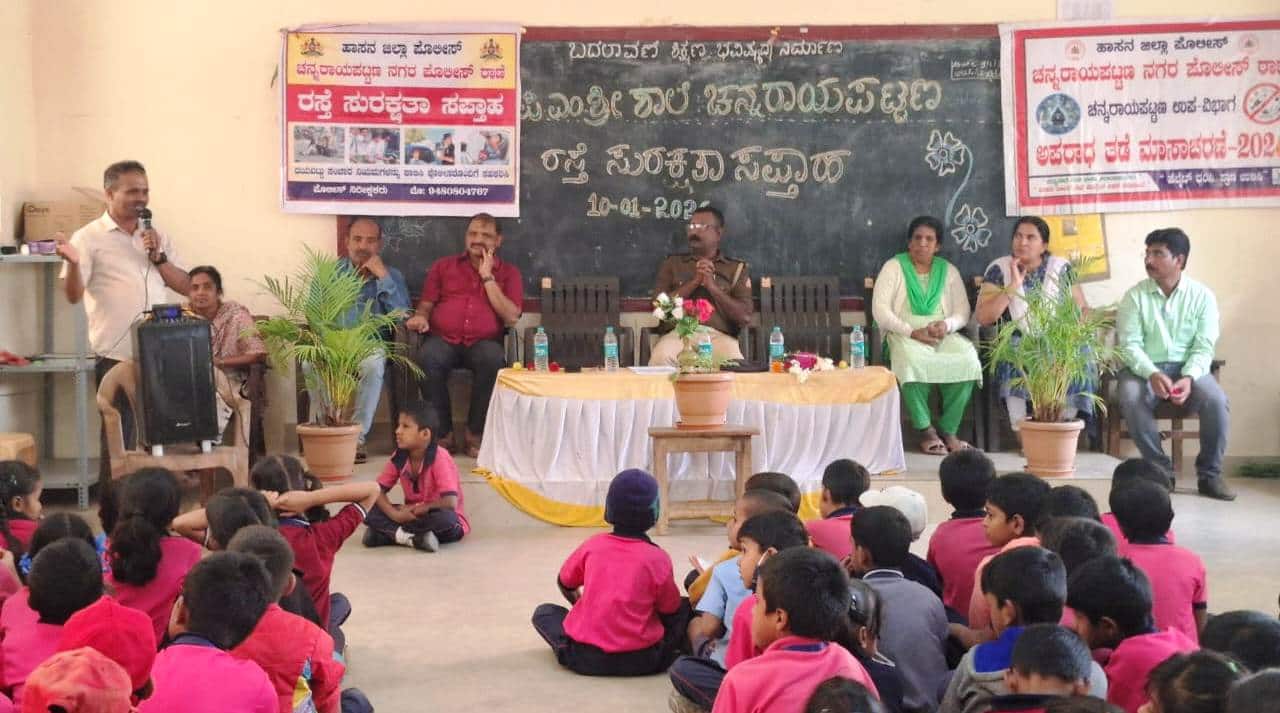 ಪಟ್ಟಣದ ಪಿಎಂಶ್ರೀ ಸರ್ಕಾರಿ ಹಿರಿಯ ಪ್ರಾಥಮಿಕ ಶಾಲೆಯಲ್ಲಿ ರಸ್ತೆ ಸುರಕ್ಷಾ ಸಪ್ತಾಹ ನಡೆಸಲಾಯಿತು.ಶಾಲಾ ಮುಖ್ಯ ಶಿಕ್ಷಕ ಸುರೇಶ್ ಬಿ ಎನ್ ಮಾತನಾಡಿ, ಇತ್ತೀಚಿನ ದಿನಗಳಲ್ಲಿ ಜನಗಳ ಓಡಾಟ, ವಾಹನಗಳ ಸಂಖ್ಯೆ ಹೆಚ್ಚಳ ಹಿನ್ನೆಲೆಯಲ್ಲಿ ಮಕ್ಕಳು ವಯೋವೃದ್ಧರು ರಸ್ತೆಯಲ್ಲಿ ಓಡಾಡುವುದೇ ಕಷ್ಟವಾಗಿರುವ ಕಾರಣ ರಸ್ತೆ ಸುರಕ್ಷತಾ ನಿಯಮಗಳನ್ನು ಅನುಸರಿಸುವುದು ಅದರ ಬಗ್ಗೆ ಜಾಗೃತಿ ಮೂಡಿಸುವುದು ಎಲ್ಲರ ಕರ್ತವ್ಯವಾಗಿರುತ್ತದೆ ಹಾಗೂ ವಾಹನ ಸವಾರರು ರಸ್ತೆಯ ನಿಯಮಗಳನ್ನ ಅರಿವಿಲ್ಲದೆ ವಾಹನಗಳನ್ನು ಚಲಾಯಿಸುವುದು ನಿಯಮಗಳ ಉಲ್ಲಂಘನೆ ಅಪಘಾತಕ್ಕೆ ಹೆಚ್ಚು ಕಾರಣವಾಗುತ್ತಿದೆ. ಆದ್ದರಿಂದ ಮಕ್ಕಳಿಗೆ ಚಿಕ್ಕ ವಯಸ್ಸಿನಲ್ಲಿ ರಸ್ತೆ ಸುರಕ್ಷತಾ ಕ್ರಮಗಳನ್ನು ಹಾಗೂ ರಸ್ತೆಯ ನಿಯಮಗಳ ಬಗ್ಗೆ ಅರಿವು ಮೂಡಿಸುವುದು ಮುಖ್ಯವಾಗಿದೆ ಜನವರಿ ಒಂದರಿಂದ ೩೦ರವರೆಗೆ ರಸ್ತೆ ಸುರಕ್ಷಾ ಸಪ್ತಾಹ ಕಾರ್ಯಕ್ರಮವಿದ್ದು ಆ ಮೂಲಕ ಶಾಲಾ ಮಟ್ಟದಲ್ಲಿ ಮಕ್ಕಳಿಗೆ ರಸ್ತೆ ನಿಯಮ ಪಾಲನೆ ಮತ್ತು ಸುರಕ್ಷತಾ ಕ್ರಮಗಳನ್ನು ಕಲಿಸುವುದು ತುಂಬಾ ಮುಖ್ಯವಾಗಿದೆ. ಆದ್ದರಿಂದ ಜಾಥಾ ಮೂಲಕ ನಮ್ಮ ಶಾಲೆಯ ಮಕ್ಕಳು ರಸ್ತೆ ಸುರಕ್ಷತಾ ಕ್ರಮದಲ್ಲಿ ಭಾಗವಹಿಸಿ ಚಾಲನೆ ನೀಡಲಾಗಿದೆ ಎಂದರು.ನಗರ ಠಾಣೆ ಪೊಲೀಸ್ ಸಬ್ ಇನ್ಸ್ಪೆಕ್ಟರ್ ಮಲ್ಲಪ್ಪ ಮಾತನಾಡಿ, ೧೮ ವರ್ಷ ಒಳಪಟ್ಟ ಮಕ್ಕಳು ವಾಹನವನ್ನು ಚಲಾಯಿಸಬಾರದು ಹಾಗೂ ೧೮ ವರ್ಷಗಳ ಪಟ್ಟ ಮಕ್ಕಳಿಗೆ ಪೋಷಕರು ವಾಹನವನ್ನು ಚಲಾಯಿಸಲು ನೀಡಬಾರದು ಹಾಗೂ ಹೆಲ್ಮೆಟ್ ಇಲ್ಲದೆ ದ್ವಿಚಕ್ರ ವಾಹನಗಳನ್ನು ಓಡಿಸಬಾರದು ಹೆಲ್ಮೆಟ್ ಅನ್ನು ಸುರಕ್ಷತೆಗಾಗಿ ತಪ್ಪದೆ ಧರಿಸಿ ಪೊಲೀಸ್ ನವರು ನೋಡುತ್ತಾರೆ ಎಂಬ ಕಾರಣಕ್ಕೆ ಧರಿಸುವುದು ಬೇಡ ಎಂದು ಹೇಳಿದರು.ಬಾಲ್ಯವಿವಾಹ ಪೋಕ್ಸೋ ಕಾಯ್ದೆ ಬಗ್ಗೆಯೂ ಕೂಡ ಮಕ್ಕಳಿಗೆ ತಿಳಿವಳಿಕೆ ನೀಡಿದರು. ಕಾರ್ಯಕ್ರಮದಲ್ಲಿ ಶಾಲೆಯ ಶಿಕ್ಷಕರಾದ ಪ್ರೇಮ ರೇಖಾ ಹಾಗೂ ಇತರ ಸಿಬ್ಬಂದಿ ಮತ್ತು ಪೊಲೀಸ್ ಇಲಾಖೆಯ ಸಿಬ್ಬಂದಿಗಳು ಉಪಸ್ಥಿತರಿದ್ದರು.