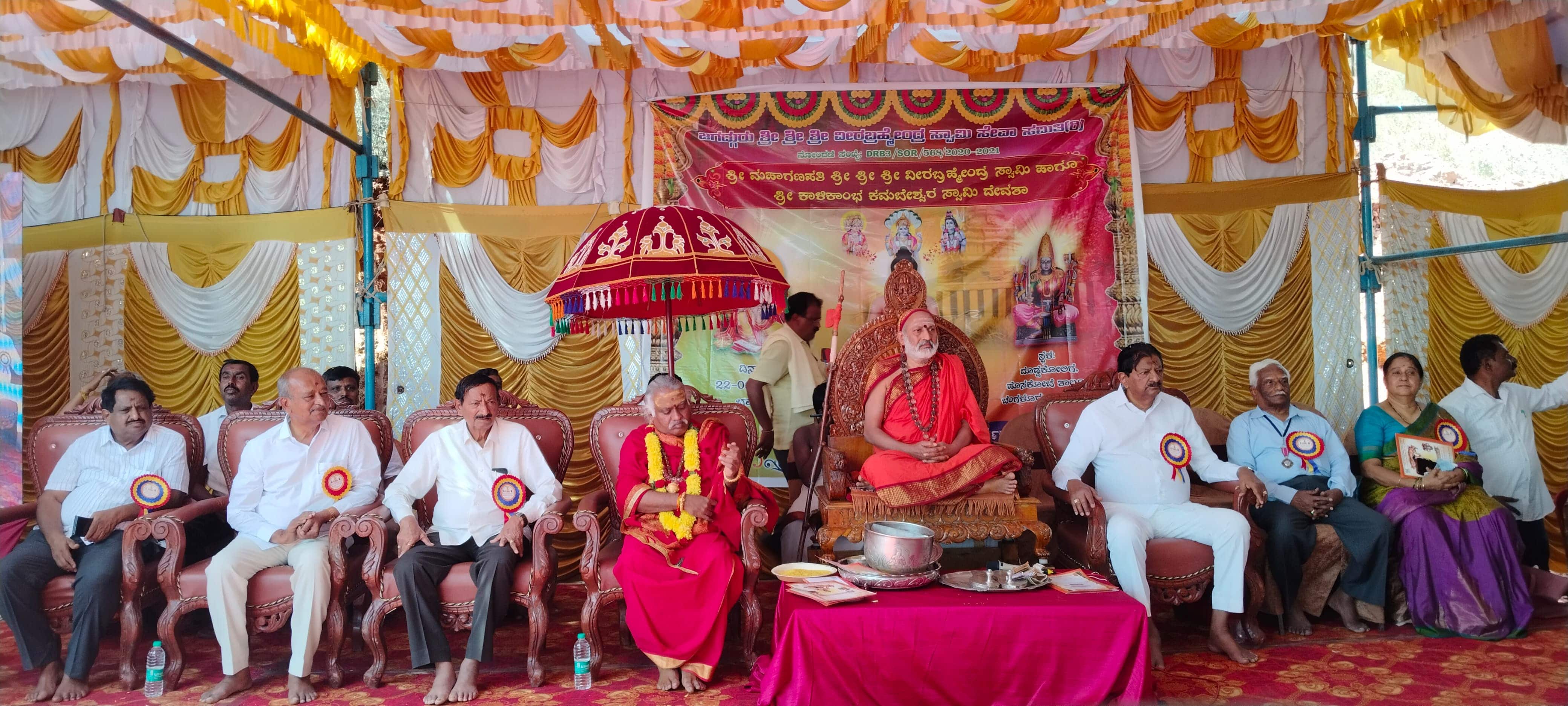 ಹೋಬಳಿಯ ದೊಡ್ಡಕೋಲಿಗ ಗ್ರಾಮದ ಬಸವೇಶ್ವರ ದೇವಸ್ಥಾನ ಅಕ್ಕಯಮ್ಮ ಗುಡ್ಡದ ತಪ್ಪಲಿನಲ್ಲಿ ಜಗದ್ಗುರು ವೀರಬ್ರಹ್ಮೇಂದ್ರ ಸ್ವಾಮಿ ಸಮಿತಿಯಿಂದ ನಿರ್ಮಾಣಗೊಂಡಿದ್ದ ಮಹಾಗಣಪತಿ, ವೀರಬ್ರಹ್ಮೇಂದ್ರಸ್ವಾಮಿ, ಕಾಳಿಕಾಂಭ, ಕಮಟೇಶ್ವರಸ್ವಾಮಿ, ದೇವತಾ ಮೂರ್ತಿಗಳ ಪ್ರತಿಷ್ಠಾಪನೆ ನೆರವೇರಿಸಿ ಅವರು ಮಾತನಾಡಿದರು.ಕಡಪ ಜಿಲ್ಲೆಯ ಕಂದಿಮಲ್ಲಯ್ಯಪಲ್ಲಿಯಲ್ಲಿರುವ ವೀರಬ್ರಹ್ಮೇಂದ್ರಸ್ವಾಮಿ ಮಠಾಧೀಶ ಶ್ರೀ ವೀರಭದ್ರಸ್ವಾಮಿ ಮಾತನಾಡಿ, ಮನುಷ್ಯ ಕ್ಷಣಿಕ ಅಸೆ ಆಕರ್ಷಣೆಗಳಿಗೆ ಬಲಿಯಾಗಿ ತನ್ನತನವನ್ನು ಕಳೆದುಕೊಳ್ಳುತ್ತಾ ಅಮೂಲ್ಯ ಮನುಷ್ಯ ಜನ್ಮಕ್ಕೆ ಕೊಳ್ಳಿ ಇಟ್ಟುಕೊಳ್ಳುವ ಪ್ರಸಂಗಗಳು ಸಾಮಾನ್ಯವಾಗುತ್ತಿವೆ ಎಂಬುದನ್ನು ೧೭ನೇ ಶತಮಾನದಲ್ಲಿಯೇ ಕಾಲಜ್ಞಾನಿ ಪೋತಲೂರು ವೀರಭ್ರಹ್ಮೇಂದ್ರರು ಜಗತ್ತಿಗೆ ಸಾರಿದ್ದರು. ಇದನ್ನು ಮನುಷ್ಯ ಆರ್ಥ ಮಾಡಿಕೊಳ್ಳದ ಸ್ಥಿತಿಯಲ್ಲಿ ಬದುಕುತ್ತಿದ್ದಾನೆ ಎಂದರು.