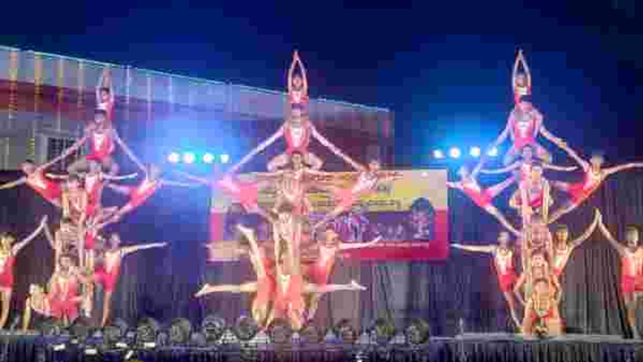 ಪಟ್ಟಣದಲ್ಲಿ ಶನಿವಾರ ರಾತ್ರಿ ನಡೆದ ಕನ್ನಡ ರಾಜ್ಯೋತ್ಸವ ಕಾರ್ಯಕ್ರಮದಲ್ಲಿ ನಡೆದ ಆಳ್ವಾಸ್ ಸಾಂಸ್ಕೃತಿಕ ವೈಭವದ ಮಲ್ಲಕಂಬದ ಕಸರತ್ತು.