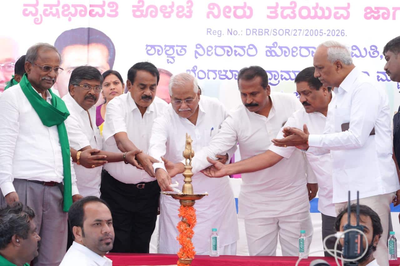ತ್ಯಾಮಗೊಂಡ್ಲು ಹೋಬಳಿಯ ಬಿದಲೂರು ಕೆರೆ ಆವರಣದಲ್ಲಿ ಕೊಳಚೆ ನೀರು ತಡೆಯುವ ಜಾಗೃತಿ ಸಮಿತಿ ಹಾಗೂ ಶಾಶ್ವತ ನೀರಾವರಿ ಹೋರಾಟ ಸಮಿತಿ ಏರ್ಪಡಿಸಿದ್ದ ಸಮಾವೇಶದಲ್ಲಿ ಭಾಗವಹಿಸಿ ಮಾತನಾಡಿದ ಅವರು, ಕುಡಿಯುವ ನೀರು ಕೊಡುವುದು ಮಾನವೀಯ ಹಕ್ಕಾಗಿದ್ದು, ಶುದ್ಧ ಕುಡಿಯುವ ನೀರು ಒದಗಿಸಬೇಕು. ನೆಲಮಂಗಲ ತಾಲೂಕಿನ 69 ಕೆರೆಗಳಿಗೆ ಬೆಂಗಳೂರಿನ ಕೊಳಚೆ ತುಂಬಿದ ವೃಷಭಾವತಿ ನದಿ ನೀರು ಬಾರದಂತೆ ತಡೆಯಲು ನಾನು ಜೀವ ಇರುವವರೆಗೂ ನಿಮ್ಮ ಜೊತೆ ಹೋರಾಡುತ್ತೇನೆ ಎಂದು ಹೇಳಿದರು.ಶಾಶ್ವತ ನೀರಾವರಿ ಹೋರಾಟ ಸಮಿತಿ ಅಧ್ಯಕ್ಷ ಆಂಜನೇಯರೆಡ್ಡಿ ಮಾತನಾಡಿ, ಬೆಂಗಳೂರಿನ ಎರಡು ಹಂತದ ಶುದ್ಧೀಕರಣದ ನೀರು ಕೆರೆಗಳಿಗೆ ಹರಿಸಿರುವುದರ ಪರಿಣಾಮ ಈಗಾಗಲೇ ಕೋಲಾರ ಮತ್ತು ಚಿಕ್ಕಬಳ್ಳಾಪುರ ಜಿಲ್ಲೆಗಳ ರೈತರಿಗೆ, ಜನರಿಗೆ ಸಮಸ್ಯೆ ಅರಿವಿಗೆ ಬಂದಿದೆ. ಕೊಳವೆ ಬಾವಿಗಳಿಗೆ ಹೋಗಿ ವಿಷದ ನೀರು ಆಗಿದೆ. ಹಲವು ರೈತರು ವಿಷಯುಕ್ತ ನೀರಿನಿಂದ ಕೊಳವೆ ಬಾವಿಗಳನ್ನು ಕಿತ್ತು ಬಿಸಾಕುತ್ತಿದ್ದಾರೆ. ನಾವು ಕೆಸಿ ವ್ಯಾಲಿ ಮತ್ತು ಎಚ್ ಎನ್ ವ್ಯಾಲಿಯಿಂದ ಆಗುವ ಪರಿಣಾಮಗಳ ಬಗ್ಗೆ ತಿಳಿದುಕೊಳ್ಳಲು ಹಲವು ವರ್ಷ ಬೇಕಾಯಿತು. ನೀರು ತಡೆಯುವ ನಿಟ್ಟಿನಲ್ಲಿ ಹೋರಾಟ ಮಾಡುತ್ತಿರುವ ನಿಮ್ಮ ಬೆಂಬಲಕ್ಕೆ ನಾವು ಸದಾ ಇರುತ್ತೇವೆ ಎಂದು ಹೇಳಿದರು.