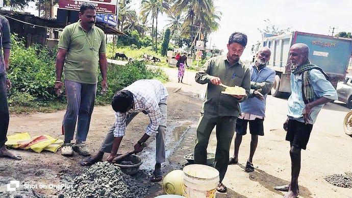ಸರ್ಕಾರದ ನಿರ್ಲಕ್ಷ್ಯದಿಂದ ಹದಗೆಟ್ಟ ಕೆ.ಆರ್.ಪೇಟೆ- ಚನ್ನರಾಯಪಟ್ಟಣ ರಾಜ್ಯ ಹೆದ್ದಾರಿಯಲ್ಲಿನ ರಸ್ತೆ ಗುಂಡಿಗಳನ್ನು ಪಟ್ಟಣದ ಮಾತೃಭೂಮಿ ಉಚಿತ ವೃದ್ಧಾಶ್ರಮದ ಸಂಸ್ಥಾಪಕ ಜೈಹಿಂದ್ ನಾಗಣ್ಣ ತಮ್ಮ ಸ್ವಂತ ಖರ್ಚಿನಲ್ಲಿ ಮುಚ್ಚಿ ಸಾರ್ವಜನಿಕರ ಮೆಚ್ಚುಗೆಗೆ ಪಾತ್ರರಾಗಿದ್ದಾರೆ.ಪಟ್ಟಣದ ಶ್ರೀ ರಾಮ ಪೆಟ್ರೋಲ್ ಬಂಕ್ ಬಳಿಯ ಬೃಹತ್ ರಸ್ತೆ ಗುಂಡಿ ಮುಚ್ಚುವ ಮೂಲಕ ತಮ್ಮ ಗುಂಡಿ ಮುಚ್ಚುವ ಸಾಮಾಜಿಕ ಸೇವೆಗೆ ಚಾಲನೆ ನೀಡಿರುವ ನಾಗಣ್ಣ, ಕೆ.ಆರ್.ಪೇಟೆಯಿಂದ ಕಿಕ್ಕೇರಿ ಪಟ್ಟಣದವರೆಗೂ ತಮ್ಮ ಗುಂಡಿ ಮುಚ್ಚುವ ಕಾಯಕವನ್ನು ಮಾಡುತ್ತಿದ್ದಾರೆ.