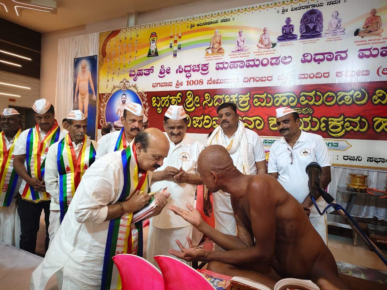ನಗರದ ರಜನಿ ಸಭಾಂಗಣದಲ್ಲಿ ಬೃಹತ್ ಶ್ರೀ ಸಿದ್ಧಚಕ್ರ ಮಹಾಮಂಡಲ ವಿಧಾನ ಮಹೋತ್ಸವ ಸಮಿತಿ ಹಾಗೂ ಭಗವಾನ ಶ್ರೀ 1008 ನೇಮಿನಾಥ ದಿಗಂಬರ ಜೈನ್ ಮಂದಿರ ಕಮಿಟಿ ವತಿಯಿಂದ ಏರ್ಪಡಿಸಿದ ಬೃಹತ್ ಶ್ರೀ ಸಿದ್ಧಚಕ್ರ ಮಹಾಮಂಡಲ ವಿಧಾನ ಮಹೋತ್ಸವ ಹಾಗೂ ಪಿಂಛಿ ಪರಿವರ್ತನಾ ಕಾರ್ಯಕ್ರಮದ ಸಮಾರೋಪ ಸಮಾರಂಭದಲ್ಲಿ ಮಾತನಾಡಿದರು.ಈ ಬದುಕು ಒಂದು ಸಂಘರ್ಷ. ಹುಟ್ಟಿದ ಮನುಷ್ಯ ಸಾಯುವವರೆಗೂ ಪ್ರತಿಯೊಂದು ಉಸಿರಾಟದಲ್ಲಿ ಪ್ರಯತ್ನ ಮಾಡಬೇಕು, ಆ ಪ್ರಯತ್ನ ನಮಗೆ ಗೊತ್ತಾಗುವುದಿಲ್ಲ. ಉಸಿರಾಡುವ ಪ್ರಾಣ ಪ್ರಕ್ರಿಯೆಯನ್ನು ಭಗವಂತ ನಡೆಸುತ್ತಾನೆ, ಯಾವುದನ್ನು ಭಗವಂತ ನಡೆಸುತ್ತಾನೆ ಅದು ಗೊತ್ತಾಗುವುದಿಲ್ಲ. ನಾವು ಮಾಡುವ ಪ್ರಯತ್ನಕ್ಕೆ ಆಯಾಸ ಇದೆ. ಕೋಟಿಗಟ್ಟಲೆ ಉಸಿರಾಟ ಮಾಡಿಸುವ ಭಗವಂತ ಎಷ್ಟು ಶ್ರೇಷ್ಠವಾಗಿರಬೇಕು. ಉಸಿರಾಟವನ್ನು ಹೇಗೆ ಮಾಡಬೇಕೆಂದು ಹೇಳುವುದು ಜೈನ ಧರ್ಮ. ಉಸಿರಾಟದಲ್ಲಿ ಸಣ್ಣ ಕ್ರಿಮಿಗೂ ತೊಂದರೆ ಆಗಬಾರದು ಎಂದು ಜೈನ ಧರ್ಮ ಹೇಳುತ್ತದೆ. ಬದುಕು ಹೇಗೆ ನಡೆಸಬೇಕೆಂದು ಹೇಳಿ ಕೊಟ್ಟಿದ್ದಾರೆ. ಆ ಬದುಕಿನ ಉಸಿರಾಟದ ಬಗ್ಗೆ ಜೈನ ಧರ್ಮ ಹೆಳುತ್ತದೆ. ಗುರುಗಳು ಹೇಳಿದಂತೆ ಜೈನ ಧರ್ಮದ ಆಚರಣೆಗಳನ್ಬು ಮಾಡಿದರೆ ಮಾನವರಲ್ಲಿ ಶ್ರೇಷ್ಠ ಮಾನವರಾಗಲು ಸಾಧ್ಯ. ಅಹಿಂಸೆಯೇ ಪರಮೋ ಧರ್ಮ. ಜೈನ ಧರ್ಮ ನಿಸರ್ಗದ ಜೊತೆ ಬೆಳೆಯುವ ಉಳಿಯುವ ಧರ್ಮ. ನಿಸರ್ಗದಲ್ಲಿ ಒಂದು ಪಕ್ಷಿ, ಕ್ರಿಮಿ ಪ್ರಾಣಿಗಳಿಗೆ ತನ್ನದೇ ರೀತಿಯಲ್ಲಿ ಬದುಕಲು ಭಗವಂತ ಅವಕಾಶ ಕೊಟ್ಟಿದ್ದಾನೆ ಎಂದು ಹೇಳಿದರು.