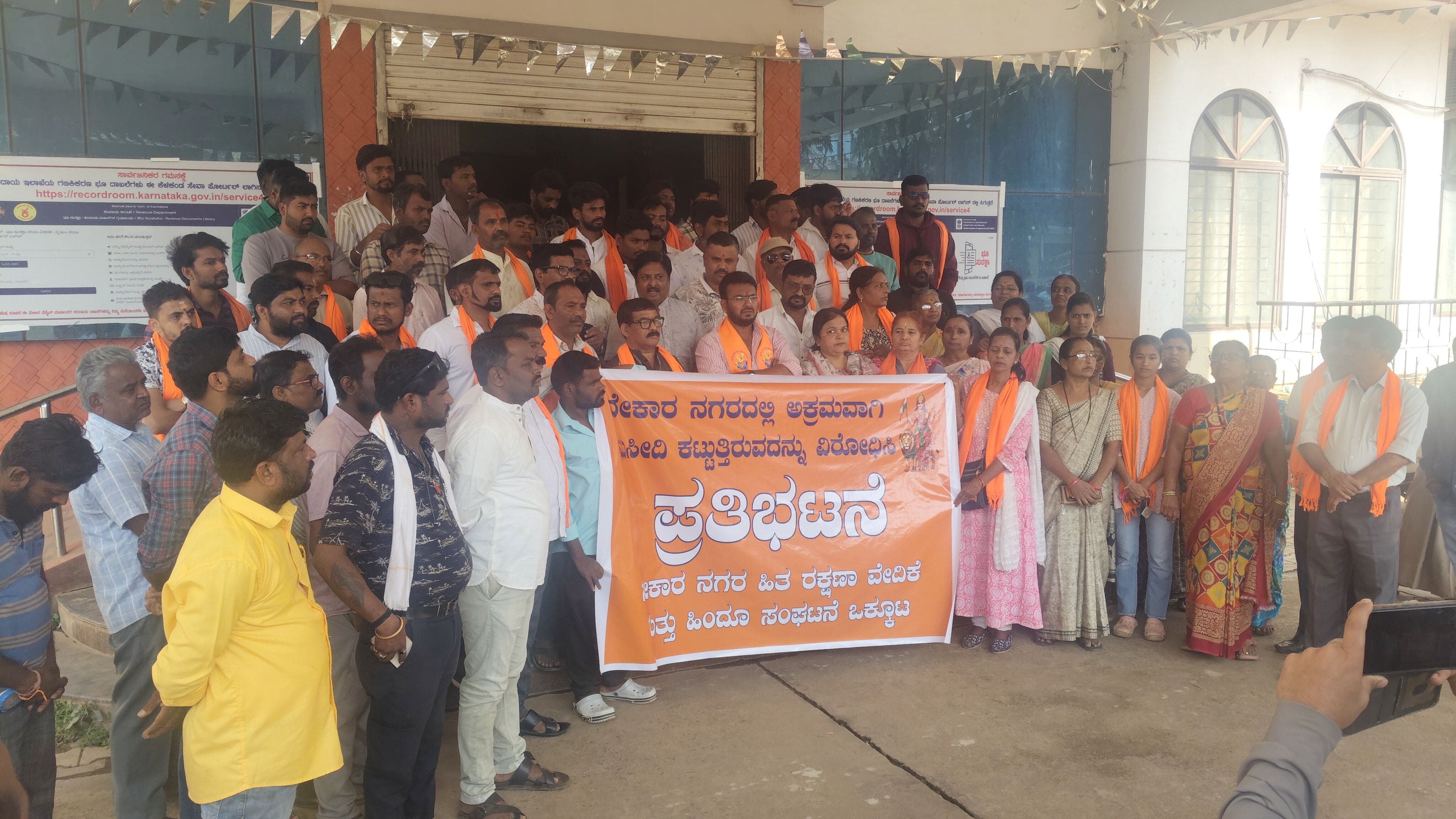 ಇಲ್ಲಿನ ನೇಕಾರ ನಗರದಲ್ಲಿ ಅನಧಿಕೃತವಾಗಿ ಮಸೀದಿ ನಿರ್ಮಿಸಲಾಗುತ್ತಿದೆ ಎಂದು ಆರೋಪಿಸಿ ಬುಧವಾರ ಮಿನಿವಿಧಾನಸೌಧದ ಎದುರು ಪ್ರತಿಭಟನೆ ನಡೆಸಿದ ನೇಕಾರ ಹಿತರಕ್ಷಣಾ ವೇದಿಕೆ ಮತ್ತು ಹಿಂದೂ ಸಂಘಟನೆಗಳ ಒಕ್ಕೂಟ, ಮಸೀದಿ ತೆರವಿಗೆ ಜ.1ರ ಗಡುವು ನೀಡಿದೆ.ನೇಕಾರ ನಗರದಲ್ಲಿ ಮನೆ ನಿರ್ಮಾಣಕ್ಕಾಗಿ ಪಡೆದಿರುವ ಜಾಗದಲ್ಲಿ ಅನಧಿಕೃತವಾಗಿ ಮಸೀದಿ, ಮದರಸಾ ನಿರ್ಮಿಸಿ ನಿತ್ಯ ಪ್ರಾರ್ಥನೆ ಸಲ್ಲಿಸಲಾಗುತ್ತಿದೆ. ಸ್ಥಳೀಯ ನಿವಾಸಿಗಳು ಹಾಗೂ ಶ್ರೀರಾಮಸೇನೆ ಕಾರ್ಯಕರ್ತರು ಈ ಮಸೀದಿ ತೆರವಿಗೆ ಪೊಲೀಸರು ಹಾಗೂ ಪಾಲಿಕೆ ಅಧಿಕಾರಿಗಳಿಗೆ ಹಲವು ಬಾರಿ ಮನವಿ ಮಾಡಿದರೂ ಈ ವರೆಗೂ ಕ್ರಮಕೈಗೊಂಡಿಲ್ಲ. ಇದನ್ನು ತಡೆಯಬೇಕಾಗಿರುವ ಪಾಲಿಕೆ ಅಧಿಕಾರಿಗಳು ನೋಡಿಯೂ ಕ್ರಮ ಕೈಗೊಂಡಿಲ್ಲ ಎಂದು ದೂರಿದರು.