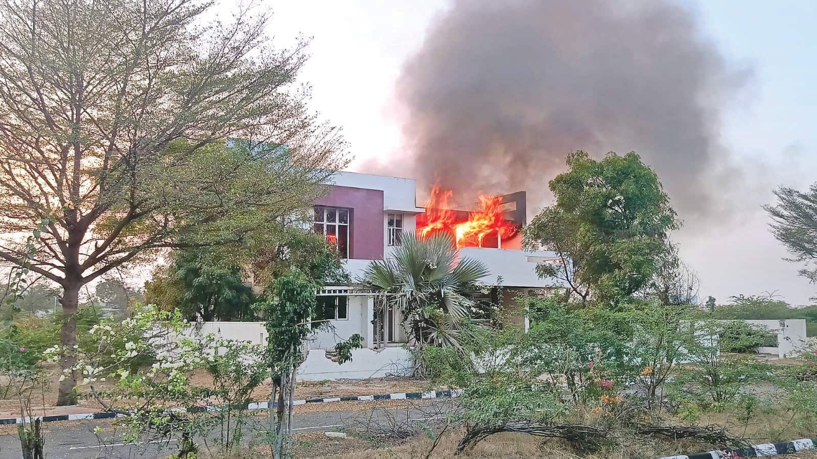 ಬ್ಯಾನರ್ ಗಲಾಟೆಯ ಕಾವು ಆರುವ ಮುನ್ನವೇ ಶುಕ್ರವಾರ ಸಂಜೆ ನಗರ ಹೊರವಲಯದ ರುಕ್ಮಣಮ್ಮ ಚೆಂಗಾರೆಡ್ಡಿ ಬಡಾವಣೆಯಲ್ಲಿರುವ ಶಾಸಕ ಗಾಲಿ ಜನಾರ್ದನ ರೆಡ್ಡಿಯವರ ಮಾದರಿ ನಿವಾಸದಲ್ಲಿ (ಮಾಡಲ್ ಹೌಸ್) ಬೆಂಕಿ ಅವಘಡ ಸಂಭವಿಸಿದೆ.