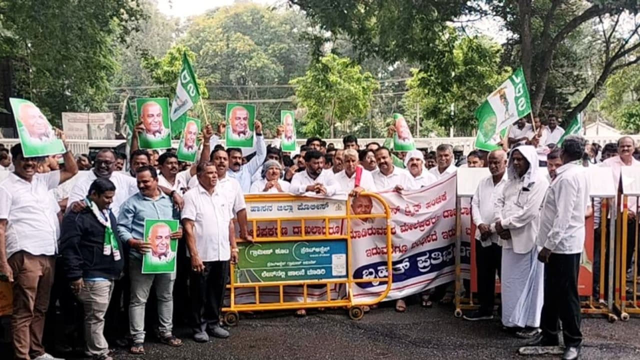 ಅಶ್ಲೀಲ ದೃಶ್ಯವುಳ್ಳ ಪೆನ್ಡ್ರೈವ್ ಹಂಚಿದ ಆರೋಪಿಗಳನ್ನು ಇನ್ನೂ ಬಂಧನ ಮಾಡಡಿಲ್ಲ ಎಂದು ಆರೋಪಿಸಿ ಜೆಡಿಎಸ್ ಪಕ್ಷದಿಂದ ಹಾಸನದಲ್ಲಿ ಪ್ರತಿಭಟನೆ ನಡೆಸಲಾಯಿತು. ಬಳಿಕ ಜೆಡಿಎಸ್ ನಾಯಕರು ಜಿಲ್ಲಾಡಳಿತಕ್ಕೆ ಮನವಿ ಸಲ್ಲಿಸಿದರು.