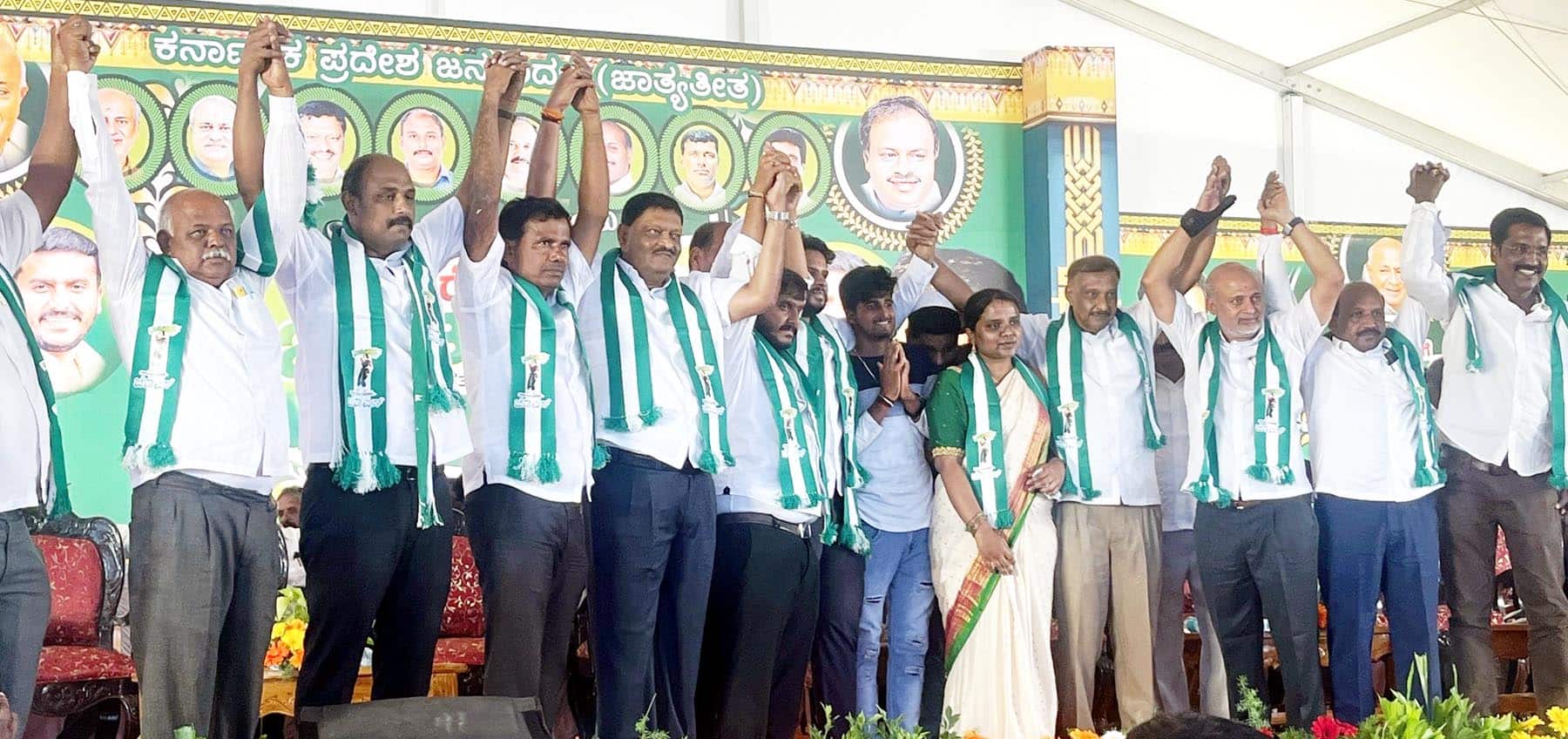 ಪಕ್ಷದ ಕಾರ್ಯಕರ್ತರು ಈಗಾಗಲೇ ಪಕ್ಷದ ಮುಖಂಡರನ್ನು ಆರಿಸುವ ಮೂಲಕ ಬಲಪಡಿಸಿದ್ದಾರೆ. ಇದೀಗ ಮುಂಬರುವ ಗ್ರಾಪಂ, ತಾಪಂ ಮತ್ತು ಜಿಪಂ ಚುನಾವಣೆಗಳಲಿ ಮುಖಂಡರು ಪಕ್ಷದ ಕಾರ್ಯಕರ್ತರ ಕೈ ಬಲಪಡಿಸಬೇಕು. ಕಾರ್ಯಕರ್ತರು ಬಲಗೊಳಿಸುವುದೇ ಈ ಸಮಾವೇಶದ ಮುಖ್ಯ ಉದ್ದೇಶವಾಗಿದೆ ಎಂದು ಅವರು ತಿಳಿಸಿದರು.ಮಾಜಿ ಸಚಿವ ಸಾ.ರಾ. ಮಹೇಶ್, ಪಕ್ಷದ ಜಿಲ್ಲಾಧ್ಯಕ್ಷ ಅಶ್ವಿನ್ ಕುಮಾರ್, ಎಚ್.ಡಿ. ಕೋಟೆ ತಾಲೂಕಿನ ಮುಖಂಡ ಕೃಷ್ಣನಾಯಕ ಮಾತನಾಡಿದರು. ಪಿರಿಯಾಪಟ್ಟಣ ತಾಲೂಕು ಮಾಜಿ ಶಾಸಕ ಮಹದೇವ್, ಮೈಮುಲ್ ಮಾಜಿ ಅಧ್ಯಕ್ಷ ಪ್ರಸನ್ನಕುಮಾರ್, ಮೈಸೂರು ನಗರಾಧ್ಯಕ್ಷ ಎಸ್.ಬಿ.ಎಂ. ಮಂಜು, ವಿಧಾನ ಪರಿಷತ್ಸದಸ್ಯ ಮಂಜೇಗೌಡ, ಮಾಜಿ ಮೇಯರ್ ರವಿಕುಮಾರ್, ತಾಲೂಕು ಮುಖಂಡರಾದ ಬಸವಲಿಂಗಯ್ಯ, ಶರವಣ, ಎಚ್.ಪಿ. ಸತೀಶ್ ಕುಮಾರ್, ಕೃಷ್ಣರಾಜ ಗುಪ್ತ, ಸಿರಾಜ್, ಹರವೆ ಶ್ರೀಧರ್, ಸತೀಶ್ ಪಾಪಣ್ಣ, ಬಿಳಿಕೆರೆ ಮಧು, ರಂಜಿತಾ ಚಿಕ್ಕಮಾದು, ದೇವರಾಜ ಒಡೆಯರ್ ಇತರರು ಇದ್ದರು.