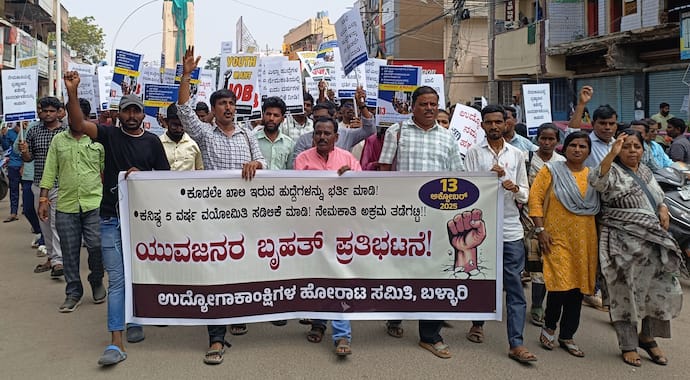 ಈ ಹಿಂದೆ ರಾಜ್ಯದಲ್ಲಿ ಅಧಿಕಾರ ನಡೆಸಿದ ಬಿಜೆಪಿ ಸರ್ಕಾರ ಖಾಲಿ ಹುದ್ದೆಗಳ ಭರ್ತಿಗೆ ಕೋವಿಡ್ ಕಾರಣ ಹೇಳಿ ಯಾವುದೇ ಪ್ರಯತ್ನ ಮಾಡಲಿಲ್ಲ. ತಾನು ಅಧಿಕಾರಕ್ಕೆ ಬಂದರೆ ಎಲ್ಲ ಹುದ್ದೆಗಳನ್ನು ಭರ್ತಿ ಮಾಡುವುದಾಗಿ ಭರವಸೆ ನೀಡಿ ಕಾಂಗ್ರೆಸ್ ಪಕ್ಷ ಅಧಿಕಾರಕ್ಕೆ ಬಂತು. ಆದರೆ ಅಧಿಕಾರಕ್ಕೆ ಬಂದು 2 ವರ್ಷ 4 ತಿಂಗಳು ಕಳೆದರೂ ಒಳ ಮೀಸಲಾತಿ ಹೆಸರಿನಲ್ಲಿ ಯಾವುದೇ ನೇಮಕಾತಿ ಮಾಡಿಲ್ಲ. ತಾನು ನೀಡಿದ ಉದ್ಯೋಗದ ಗ್ಯಾರಂಟಿಯನ್ನು ಅಧಿಕಾರಕ್ಕೆ ಬಂದ ನಂತರ ಕಾರ್ಯರೂಪಕ್ಕೆ ತರುವುದೆಂದು ಯುವಜನತೆ ನಿರೀಕ್ಷೆಯಲ್ಲಿದ್ದರು. ಆದರೆ, ಯುವಸಮುದಾಯದ ನಿರೀಕ್ಷೆಯನ್ನು ರಾಜ್ಯ ಸರ್ಕಾರ ಸಂಪೂರ್ಣ ಹುಸಿಗೊಳಿಸಿದೆ ಎಂದು ಪ್ರತಿಭಟನಾಕಾರರು ತಿಳಿಸಿದರು.2025-26ನೇ ಸಾಲಿಗೆ ರಾಜ್ಯದ 43 ಇಲಾಖೆಗಳಲ್ಲಿ 2,84,881 ಹುದ್ದೆಗಳು ಖಾಲಿ ಬಿದ್ದಿವೆ. ಅವುಗಳ ನೇಮಕಕ್ಕೆ ಕಿಂಚಿತ್ತು ಪ್ರಯತ್ನಗಳು ನಡೆಯುತ್ತಿಲ್ಲ. ಕೆಲವು ಕುಂಟುನೆಪಗಳನ್ನು ಹೇಳುತ್ತಾ ನೇಮಕಾತಿಗಳನ್ನು ಮುಂದೂಡಲಾಗುತ್ತಿದೆ. ರಾಜ್ಯದ ಎಲ್ಲೆಡೆ ಲಕ್ಷಾಂತರ ಉದ್ಯೋಗಾಕಾಂಕ್ಷಿ ಯುವಜನರು ಸರ್ಕಾರ ನೇಮಕಾತಿ ಪ್ರಕ್ರಿಯೆ ಪ್ರಾರಂಭಿಸಬಹುದೆಂದು ಹಲವಾರು ವರ್ಷಗಳಿಂದ ಪರೀಕ್ಷೆಗಳ ತಯಾರಿ ನಡೆಸುತ್ತಿದ್ದಾರೆ. 4-5 ವರ್ಷಗಳಿಂದ ನೇಮಕಾತಿಗಳೇ ನಡೆಯದಿರುವುದರಿಂದ ಅದೆಷ್ಟೋ ಯುವಜನರು ತಮ್ಮ ಅರ್ಹತಾ ವಯಸ್ಸನ್ನು ಮೀರಿದ್ದಾರೆ. ಉದ್ಯೋಗದ ಭರವಸೆಯಿಲ್ಲದೇ ಯುವಜನರು ಆತ್ಮಹತ್ಯೆಯಂತಹ ಕಠಿಣ, ನೋವಿನ ನಿರ್ಧಾರಕ್ಕೆ ಮೊರೆ ಹೋಗುತ್ತಿದ್ದಾರೆ ಎಂದು ಪ್ರತಿಭಟನೆ ಬೆಂಬಲಿಸಿ ಮಾತನಾಡಿದ ಎಐಡಿವೈಒ ಸಂಘಟನೆಯ ರಾಜ್ಯಾಧ್ಯಕ್ಷ ಶರಣಪ್ಪ ಉದ್ಬಾಳ್ ತಿಳಿಸಿದರು.ರಾಜ್ಯದ ಪ್ರಾಥಮಿಕ ಮತ್ತು ಪ್ರೌಢ ಶಾಲೆಗಳಲ್ಲಿ 59,454 ಹುದ್ದೆಗಳು ಖಾಲಿ ಬಿದ್ದಿವೆ. ಕಲ್ಯಾಣ ಕರ್ನಾಟಕ ಭಾಗದ 6 ಜಿಲ್ಲೆಗಳಲ್ಲಿ 21,381 ಶಿಕ್ಷಕರ ಹುದ್ದೆಗಳು ಖಾಲಿ ಇವೆ. ಮತ್ತೊಂದೆಡೆ ಆರೋಗ್ಯ, ಗ್ರಾಮೀಣಾಭಿವೃದ್ಧಿ ಹಾಗೂ ಪಂಚಾಯತ್ ರಾಜ್, ಕಂದಾಯ, ಒಳಾಡಳಿತ ಸೇರಿದಂತೆ ಹಲವಾರು ಇಲಾಖೆಗಳಲ್ಲಿ ಬಹಳ ದೊಡ್ಡ ಸಂಖ್ಯೆಯ ಹುದ್ದೆಗಳು ಖಾಲಿ ಇರುವುದರಿಂದ ಜನಸಾಮಾನ್ಯರಿಗೆ ಸಿಗಬೇಕಾದ ಸೇವೆಗಳು ಸರಿಯಾಗಿ ತಲುಪುತ್ತಿಲ್ಲ. ಖಾಲಿ ಇರುವ ಹುದ್ದೆಗಳನ್ನು ಗುತ್ತಿಗೆ, ಹೊರಗುತ್ತಿಗೆ ಆಧಾರದಲ್ಲಿ ತುಂಬಿಕೊಂಡು ಪುಡಿಗಾಸಿಗೆ, ಉದ್ಯೋಗ ಭದ್ರತೆ ನೀಡದೇ ದುಡಿಸಿಕೊಳ್ಳಲಾಗುತ್ತಿದೆ ಎಂದು ಹೋರಾಟ ಸಮಿತಿಯ ಜಿಲ್ಲಾ ಸಂಚಾಲಕ ಜಗದೀಶ್ ನೇಮಕಲ್ ಆರೋಪಿಸಿದರು.