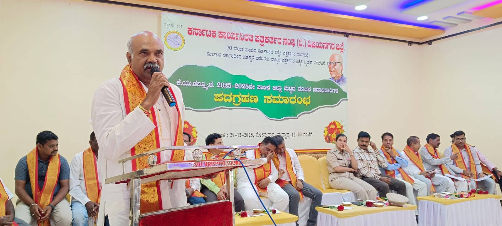 ಸಂಘದ ಜಿಲ್ಲಾ ಪ್ರಧಾನ ಕಾರ್ಯದರ್ಶಿ ಕೆ.ಲಕ್ಷ್ಮಣ ಪ್ರಾಸ್ತಾವಿಕ ಮಾತನಾಡಿದರು.ಸಮಾರಂಭದ ಅಧ್ಯಕ್ಷತೆಯನ್ನು ಜಿಲ್ಲಾ ಘಟಕದ ಅಧ್ಯಕ್ಷ ಪಿ.ಸತ್ಯನಾರಾಯಣ ವಹಿಸಿದ್ದರು. ಸಂಘದ ರಾಜ್ಯ ಪ್ರಧಾನ ಕಾರ್ಯದರ್ಶಿ ಜಿ.ಸಿ. ಲೋಕೇಶ್, ರಾಜ್ಯ ಕಾರ್ಯದರ್ಶಿ ಸೋಮಶೇಖರ್ ಕೆರೆಗೋಡು, ರಾಜ್ಯ ಸಮಿತಿ ಸದಸ್ಯ ಪಿ.ವೆಂಕೋಬ ನಾಯಕ, ವಿಕಾಸ ಬ್ಯಾಂಕ್ ಅಧ್ಯಕ್ಷ ವಿಶ್ವನಾಥ ಚ.ಹಿರೇಮಠ ಸೇರಿದಂತೆ ಜಿಲ್ಲೆಯ ವಿವಿಧ ತಾಲೂಕು ಹಾಗೂ ಜಿಲ್ಲಾ ಘಟಕದ ಪದಾಧಿಕಾರಿಗಳು ಪತ್ರಕರ್ತರು ಭಾಗವಹಿಸಿದ್ದರು.