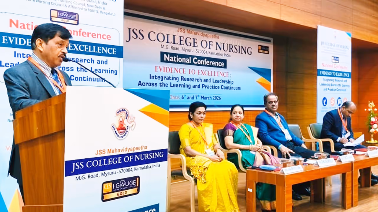 ಮೈಸೂರಿನ ಜೆಎಸ್ಎಸ್ ನರ್ಸಿಂಗ್ ಕಾಲೇಜು ಶನಿವಾರ ಆಯೋಜಿಸಿದ್ದ ಸಾಕ್ಷ್ಯಾಧಾರದಿಂದ ಉನ್ನತಿಯತ್ತ ಕುರಿತು ವಿಚಾರ ಸಂಕಿರಣದಲ್ಲಿ ಜೆಎಸ್ಎಸ್- ಅಹೆರ್ ಕುಲಪತಿ ಡಾ.ಎಚ್. ಬಸವನಗೌಡಪ್ಪ ಮಾತನಾಡಿದರು.----ಕನ್ನಡಪ್ರಭ ವಾರ್ತೆ ಮೈಸೂರು