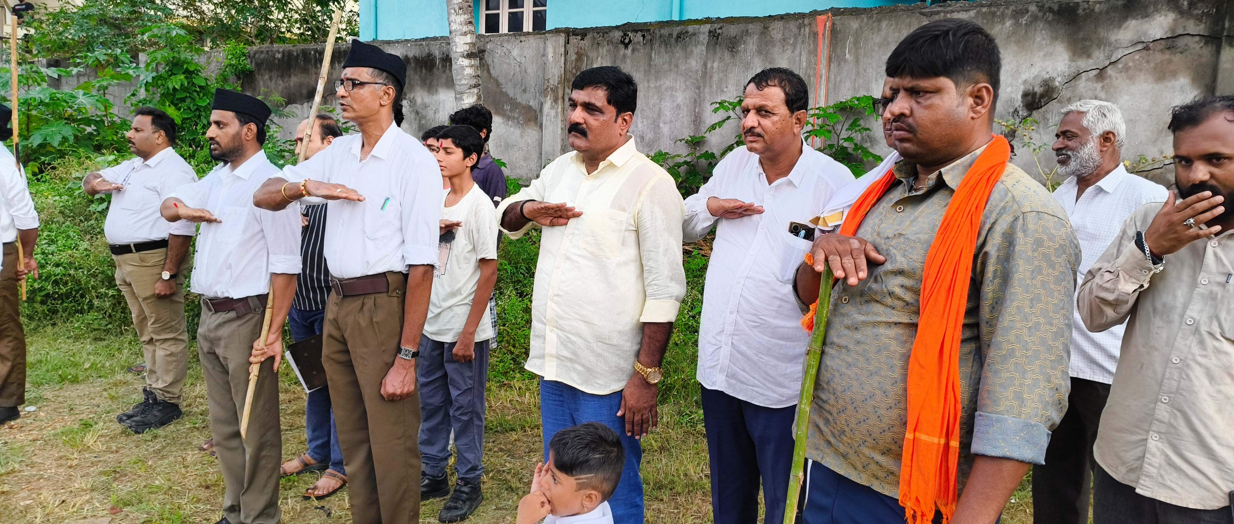 ರಾಷ್ಟ್ರೀಯ ಸ್ವಯಂ ಸೇವಕ ಸಂಘ (ಆರ್.ಎಸ್.ಎಸ್) ಸ್ಥಾಪನೆಯಾಗಿ ನೂರು ವರ್ಷ ತುಂಬಿದ ಹಿನ್ನೆಲೆಯಲ್ಲಿ ಪಟ್ಟಣದಲ್ಲಿ ಭಾನುವಾರ ಆರ್.ಎಸ್.ಎಸ್ ಕಾರ್ಯಕರ್ತರಿಂದ ಶಾಂತಿಯುತ ಪಥ ಸಂಚಲನ ನಡೆಯಿತು.ಪಟ್ಟಣದ ಪೊಲೀಸ್ ಠಾಣೆ ಬಳಿಯ ಖಾಸಗಿ ಕಟ್ಟಡದ ಜಾಗದಲ್ಲಿ ಗಣವೇಷಧಾರಿಗಳಾಗಿ ಸೇರಿದ ಆರ್.ಎಸ್.ಎಸ್ ಕಾರ್ಯಕರ್ತರು ಸದಾ ವತ್ಸಲೇ ಮಾತೃಭೂಮಿ ಎನ್ನುವ ಆರ್.ಎಸ್.ಎಸ್ ಗೀತೆ ಹಾಡಿ ಧ್ವಜವಂದನೆ ಸಲ್ಲಿಸುವ ಮೂಲಕ ಪಥಸಂಚಲನ ಆರಂಭಿಸಿದರು.