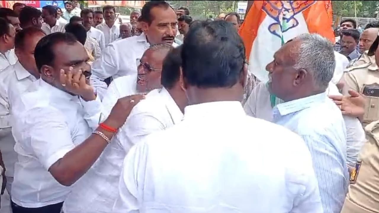 ಜಿಲ್ಲಾ ಕಾಂಗ್ರೆಸ್ ಸಮಿತಿಯಲ್ಲಿ ಬಣ ರಾಜಕೀಯದ ಸಂಘರ್ಷದಿಂದಾಗಿ ಸೋಮವಾರ ನಗರದ ಡಾ.ಅಂಬೇಡ್ಕರ್ ವೃತ್ತದಲ್ಲಿ ನಡೆದ ಪ್ರತಿಭಟನೆಯಲ್ಲಿ ಕುರ್ಚಿಗಾಗಿ ಕೈ ನಾಯಕರು ಕಾದಾಡಿದ ಪ್ರಸಂಗ ನಡೆಯಿತು.ಪ್ರತಿಭಟನೆ ಪ್ರಾರಂಭಕ್ಕೂ ಮುನ್ನ ವೇದಿಕೆ ಮೇಲೆ ಸಚಿವರು, ಶಾಸಕರು ಹಾಗೂ ಹಿರಿಯ ನಾಯಕರಿಗಾಗಿ ಹಾಕಿದ್ದ ಕುರ್ಚಿಯಲ್ಲಿ ಕುಳಿತುಕೊಳ್ಳುವ ವಿಚಾರಕ್ಕೆ ಸಂಬಂಧಿಸಿದಂತೆ ಡಿಸಿಸಿ ಅಧ್ಯಕ್ಷ ಬಸವರಾಜ ಪಾಟೀಲ್ ಇಟಗಿ ಹಾಗೂ ನಗರಸಭೆ ಸದಸ್ಯ ಜಿಂದಪ್ಪ ಅವರು ಕಚ್ಚಾಟ ಆರಂಭಿಸುತ್ತಿದ್ದಂತೆ ಮಧ್ಯ ಪ್ರವೇಶಿಸಿದ ವಿಧಾನ ಪರಿಷತ್ ಸದಸ್ಯ ಎ.ವಸಂತಕುಮಾರ ಜೋರಾಗಿ ಕಿರಿಚಾಡಲು ಆರಂಭಿಸಿದರು. ವಾಗ್ವಾದ ಆರಂಭಗೊಳ್ಳುತ್ತಿದ್ದಂತೆ ಸಿಎಂಸಿ ಮಾಜಿ ಸದಸ್ಯ ಬಾಬರ್ ಅವರು ಜಿಂದಪ್ಪರ ಮೇಲೆ ರೇಗಾಡುತ್ತಿದ್ದಂತೆ, ಸ್ಥಳದಲ್ಲಿದ್ದ ಇತರೆ ಮುಖಂಡರು ಕಕ್ಕಾಬಿಕ್ಕಿಯಾದರು. ಘಟನಾ ಸ್ಥಳಕ್ಕೆ ಆಗಮಿಸಿದ ಪೊಲೀಸರು ಮುಖಂಡರನ್ನು ಸಮಧಾನ ಪಡಿಸಿದರು.