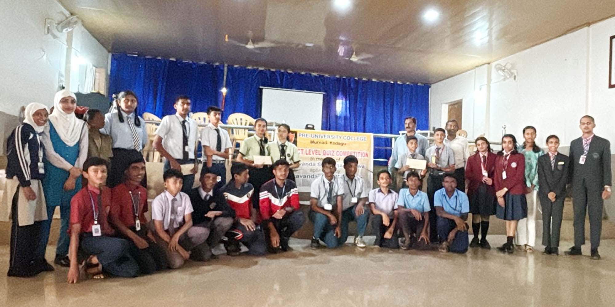 ಕನ್ನಡಪ್ರಭ ವಾರ್ತೆ ನಾಪೋಕ್ಲುಮೂರ್ನಾಡು ವಿದ್ಯಾ ಸಂಸ್ಥೆಯ ಪದವಿ ಪೂರ್ವ ಕಾಲೇಜಿನ ವತಿಯಿಂದ ಪ್ರೌಢಶಾಲಾ ವಿದ್ಯಾರ್ಥಿಗಳಿಗೆ ಜಿಲ್ಲಾಮಟ್ಟದ ರಸಪ್ರಶ್ನೆ ಕಾರ್ಯಕ್ರಮವನ್ನು ಹಮ್ಮಿಕೊಳ್ಳಲಾಗಿತ್ತು.