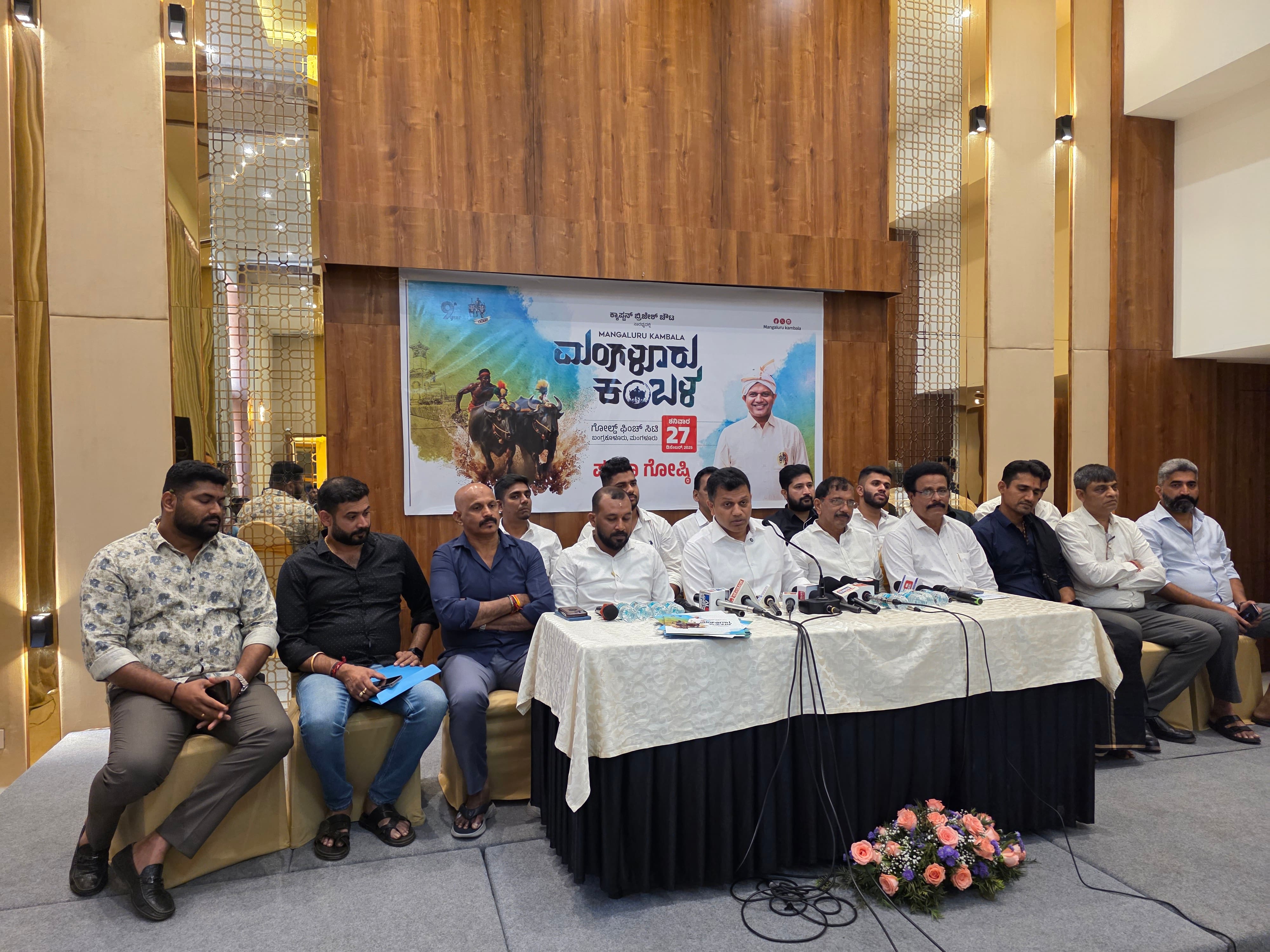 ಮಂಗಳೂರು: ಒಂಭತ್ತನೇ ವರ್ಷದ ರಾಮಲಕ್ಷ್ಮಣ ಜೋಡುಕರೆ ಹೊನಲು ಬೆಳಕಿನ ಮಂಗಳೂರು ಕಂಬಳ ಮಂಗಳೂರು ಹೊರವಲಯದ ಬಂಗ್ರ ಕೂಳೂರಿನ ಗೋಲ್ಡ್ ಫಿಂಚ್ ಸಿಟಿಯಲ್ಲಿ ಡಿ. 27 ರಂದು ನಡೆಯಲಿದೆ.ಮಂಗಳೂರು ಕಂಬಳ ಸಮಿತಿಯ ಅಧ್ಯಕ್ಷ, ಸಂಸದ ಕ್ಯಾ.ಬ್ರಿಜೇಶ್ ಚೌಟ ಮಂಗಳವಾರ ಸುದ್ದಿಗೋಷ್ಠಿಯಲ್ಲಿ ಈ ಕುರಿತು ವಿವರ ನೀಡಿದರು.