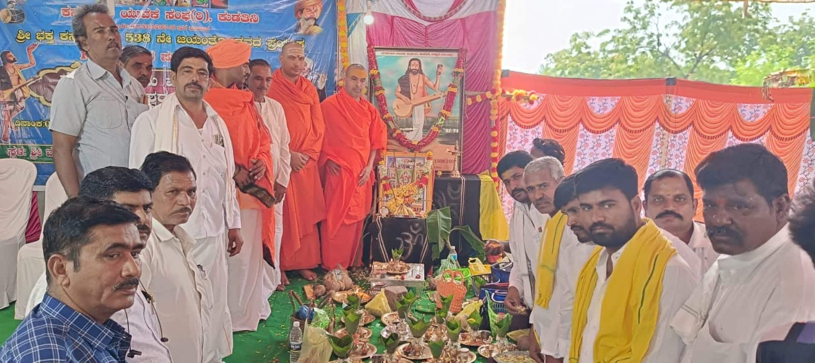 ಕುಡತಿನಿ ಪಟ್ಟಣದಲ್ಲಿ ಕನಕದಾಸ ಯುವಕ ಸಂಘದಿಂದ ಜಯಂತಿ ಪ್ರಯುಕ್ತ ಮಂಗಳವಾರ ಹಮ್ಮಿಕೊಳ್ಳಲಾಗಿದ್ದ ಗೋಲಗೇರಿಯ ಪವಾಡ ಪುರುಷ ಗೊಲ್ಲಾಳೇಶ್ವರ ಮಹಾ ಪುರಾಣದ ಧರ್ಮಸಭೆಯ ದಿವ್ಯ ಸಾನಿಧ್ಯವಹಿಸಿ ಆಶೀರ್ವಚನ ನೀಡಿದರು.ಸಾಮಾಜಿಕ ಕಳಕಳಿ ಮತ್ತು ಮಾನವೀಯ ನೆಲೆಯಲ್ಲಿ ದಾಸರು ರಚಿಸಿದ ಸಾಹಿತ್ಯ ಕೃತಿಯು ಯುವ ಸಮೂಹಕ್ಕೆ ದಾರಿ ದೀಪವಾಗಿವೆ. ಪ್ರತಿಯೊಬ್ಬರೂ ದುಶ್ಚಟ ನಿಲ್ಲಿಸಿ ಅದಕ್ಕೆ ಮಾಡುವ ವೆಚ್ಚವನ್ನು ಧರ್ಮ ಕಾರ್ಯಕ್ಕೆ ಬಳಕೆ ಮಾಡಬೇಕು. ಜತೆಗೆ ಎಲ್ಲರೂ ಒಂದೇ ಎಂಬ ಭಾವನೆ ಮೂಲಕ ಉತ್ತಮ ಸಮಾಜ ನಿರ್ಮಾಣಕ್ಕೆ ಕೈಜೋಡಿಸಬೇಕು ಎಂದರು.
