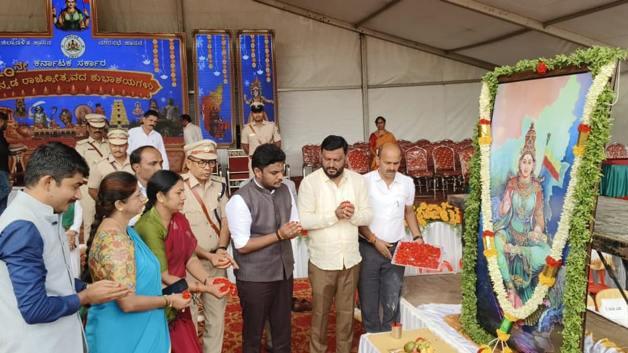 ನಗರದ ಸಾಲಗಾಮೆ ರಸ್ತೆ ಬಳಿ ಇರುವ ಹಾಕಿ ಮೈದಾನದಲ್ಲಿ ಜಿಲ್ಲಾಡಳಿತದಿಂದ ಆಯೋಜಿಸಲಾಗಿದ್ದ ಕನ್ನಡ ರಾಜ್ಯೋತ್ಸವ ಕಾರ್ಯಕ್ರಮದಲ್ಲಿ ಜಿಲ್ಲಾ ಉಸ್ತುವಾರಿ ಸಚಿವರ ಗೈರು ಹಾಜರಿಯಲ್ಲಿ ಜಿಲ್ಲಾಧಿಕಾರಿ ಸತ್ಯಭಾಮ ಅವರು ಭಾಗವಹಿಸಿ ತಾಯಿ ಭುವನೇಶ್ವರಿ ದೇವಿ ಭಾವಚಿತ್ರಕ್ಕೆ ಪುಷ್ಪ ಅರ್ಪಣೆ ಮಾಡಿ ನಮನ ಸಲ್ಲಿಸಿ, ನಂತರ ರಾಷ್ಟ್ರ ಧ್ವಜಾರೋಹಣ ನೆರವೇರಿಸಿ ಕನ್ನಡ ರಾಜ್ಯೋತ್ಸವದ ಸಂದೇಶ ನೀಡಿದರು.ಕನ್ನಡ ಭಾಷೆಗೆ ೩ ಸಾವಿರ ವರ್ಷಗಳಿಗೂ ಹೆಚ್ಚಿನ ಇತಿಹಾಸವಿದೆ ಎನ್ನಲಾಗಿದೆ. ಕಿ.ಪೂ.೨ನೇ ಶತಮಾನದಲ್ಲೇ ಕನ್ನಡ ಭಾಷೆ, ಸಾಹಿತ್ಯ ಇತ್ತೆಂದು ವಿದ್ವಾಂಸರು ಪ್ರತಿಪಾದಿಸಿದ್ದಾರೆ. ಆ ನಂತರದಲ್ಲಿ ಹಂತಹಂತವಾಗಿ ವಿವಿಧ ಸ್ವರೂಪಗಳಲ್ಲಿ ನಮ್ಮ ಭಾಷೆ, ಸಂಸ್ಕೃತಿ, ಪದ್ಧತಿ, ಪರಂಪರೆಗಳು ಬೆಳೆದು ಬಂದಿವೆ. ಎಂಟು ಜ್ಞಾನಪೀಠ ಪ್ರಶಸ್ತಿಗಳು ನಮ್ಮ ಸಾಹಿತ್ಯಿಕ ಶ್ರೀಮಂತಿಕೆಯ ಸಂಕೇತವಾಗಿದೆ ಎಂದರು.