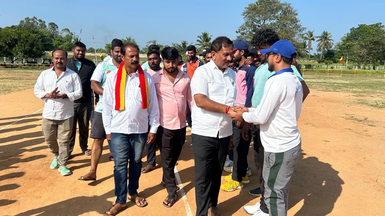 ಪಟ್ಟಣದ ಶ್ರೀರಂಗನಾಥಸ್ವಾಮಿ ಮೈದಾನದಲ್ಲಿ 3 ದಿನಗಳು ನಡೆಯುವ ಕನ್ನಡ ರಾಜ್ಯೋತ್ಸವ ಕಪ್ ಕ್ರಿಕೆಟ್ ಪಂದ್ಯಾವಳಿಗೆ ಶಾಸಕ ರಮೇಶ ಬಂಡಿಸಿದ್ದೇಗೌಡ ಚಾಲನೆ ನೀಡಿದರು.ಕರ್ನಾಟಕ ರಕ್ಷಣಾ ವೇದಿಕೆಯಿಂದ ಆಯೋಜಿಸಿದ್ದ ಪಂದ್ಯಾವಳಿಯಲ್ಲಿ ಶಾಸಕರು ಮಾತನಾಡಿ, ಪ್ರಸ್ತುತ ದಿನಗಳಲ್ಲಿ ಹಲವು ಕ್ರೀಡೆಗಳು ನಶಿಸುತ್ತಿವೆ. ಶಾಲಾ-ಕಾಲೇಜುಗಳಲ್ಲಿ ವ್ಯಾಸಂಗ ಮಾಡುವ ವೇಳೆ ಕ್ರೀಡೆಗಳಲ್ಲಿ ಹೆಚ್ಚಾಗಿ ಭಾಗವಹಿಸಿ ಶಿಕ್ಷಣಕ್ಕೆ ಸಮಾನವಾಗಿ ಕ್ರೀಡೆಯಲ್ಲಿ ಭಾಗವಹಿಸಬೇಕು. ಇದರಿಂದ ದೈಹಿಕ ವ್ಯಾಯಾಮ ಜೊತೆಗೆ ಕ್ರೀಡೆಗಳನ್ನ ಉಳಿಸಿ ಬೆಳಸಿದಂತಾಗುತ್ತದೆ ಎಂದರು.