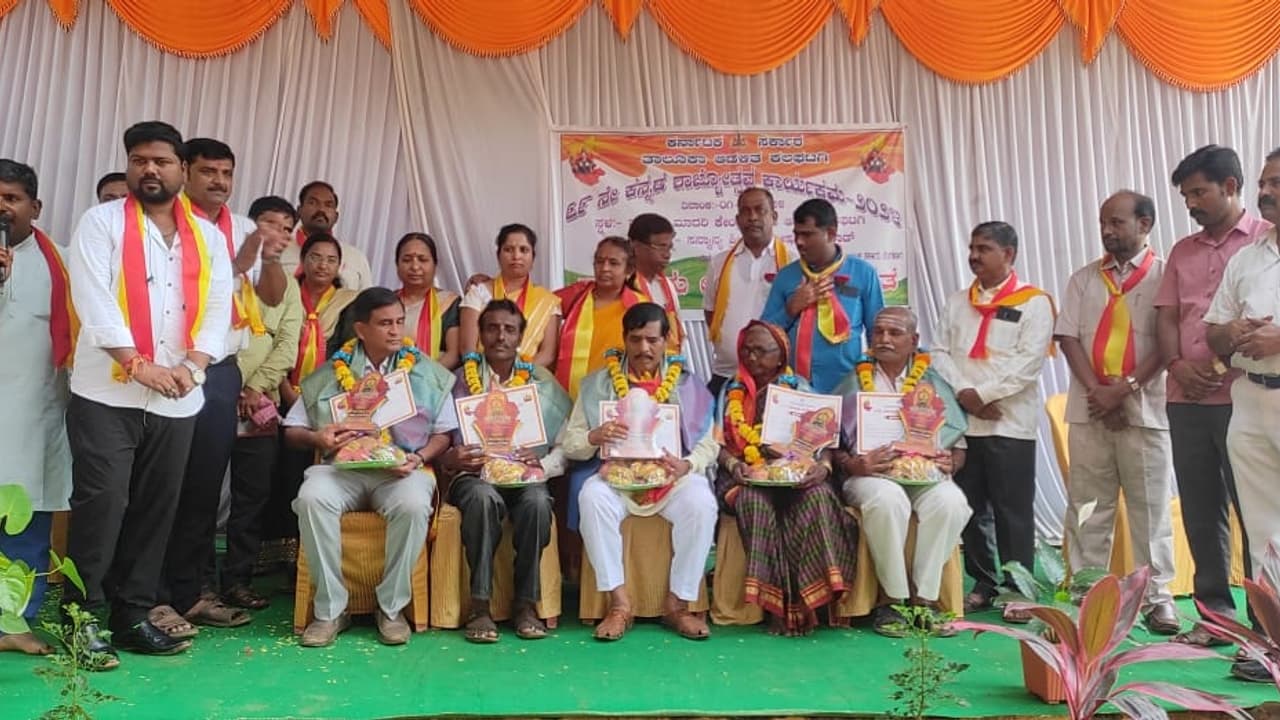 ಪ್ರಾಚೀನ ಭಾಷೆಯಾದ ಕನ್ನಡ ಆಂಗ್ಲಭಾಷೆಯ ವ್ಯಾಮೋಹದಿಂದಾಗಿ ಸಂಬಂಧದ ಪದಗಳು ನಶಿಸಿಹೋಗುತ್ತಿವೆ ಎಂದು ಆತಂಕ ವ್ಯಕ್ತಪಡಿಸಿದ ಅವರು, ಹರಿದು ಹಂಚಿಹೋಗಿದ್ದ ಕನ್ನಡದ ಪ್ರದೇಶಗಳು ಒಂದುಗೂಡಿದ ದಿನ ಕನ್ನಡ ರಾಜ್ಯೋತ್ಸವ ಆಗಿದ್ದು ಇಂಥಹ ದಿನವನ್ನು ಕನ್ನಡಿಗರು ಅಭಿಮಾನದಿಂದ ಮನೆ ಹಬ್ಬವಾಗ ಆಚರಿಸಬೇಕು ಎಂದರು.ವಿವಿಧ ಕ್ಷೇತ್ರದಲ್ಲಿ ಸಾಧನೆ ಮಾಡಿದ ತಾಲೂಕಿನ 10 ಸಾಧಕರನ್ನು ಸನ್ಮಾನಿಸಲಾಯಿತು ಶಾಲಾ ಮಕ್ಕಳಿಂದ ಸಂಸ್ಕೃತಿ ಕಾರ್ಯಕ್ರಮ ಜರುಗಿದವು.