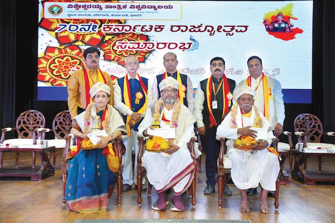 ವಿಶ್ವೇಶ್ವರಯ್ಯ ತಾಂತ್ರಿಕ ವಿಶ್ವವಿದ್ಯಾಲಯವು 1998ರಲ್ಲಿ ಸ್ಥಾಪನೆಯಾಗಿ ಇಂದು ದೇಶದ ಅತಿ ದೊಡ್ಡ ತಾಂತ್ರಿಕ ವಿಶ್ವವಿದ್ಯಾಲಯಗಳಲ್ಲಿ ಒಂದಾಗಿ ಗುರುತಿಸಿಕೊಂಡಿದೆ. ನಮ್ಮ ವಿಶ್ವವಿದ್ಯಾಲಯವು ಶಿಕ್ಷಣದಲ್ಲಿ ಗುಣಮಟ್ಟ, ಪಾರದರ್ಶಕತೆ, ನವೀನತೆ ಮತ್ತು ಸಾಮಾಜಿಕ ಜವಾಬ್ದಾರಿಗಳ ಮೇಲೆ ನಿಂತಿದೆ. ನಾವು ಎಲ್ಲರೂ ನಮ್ಮ ನಾಡು, ನಮ್ಮ ಭಾಷೆ, ನಮ್ಮ ವಿಶ್ವವಿದ್ಯಾಲಯ ಎಂಬ ಭಾವದಿಂದ, ಜ್ಞಾನ, ಸಂಶೋಧನೆ ಮತ್ತು ನಿಸ್ವಾರ್ಥ ಸೇವೆಯ ಮೂಲಕ ನಾಡಿನ ಪ್ರಗತಿಗೆ ಕೊಡುಗೆ ನೀಡಬೇಕು ಎಂದು ಹೇಳಿದರು.ಕಾರ್ಯಕ್ರಮದಲ್ಲಿ ಬೆಳಗಾವಿ ಜಿಲ್ಲೆಯ ವತಿಯಿಂದ ರಾಜ್ಯೋತ್ಸವ ಪ್ರಶಸ್ತಿಗೆ ಭಾಜನರಾದ ರಾಜಶ್ರೀ ಹಲಗೆಕರ್, ಪುಂಡಲೀಕ ಶಾಸ್ತ್ರಿ ಮತ್ತು ಶ್ರೀ ಸನ್ನಿಂಗಪ್ಪ ಮುಷೆನಗೋಳ ಅವರನ್ನು ಸನ್ಮಾನಿಸಲಾಯಿತು.