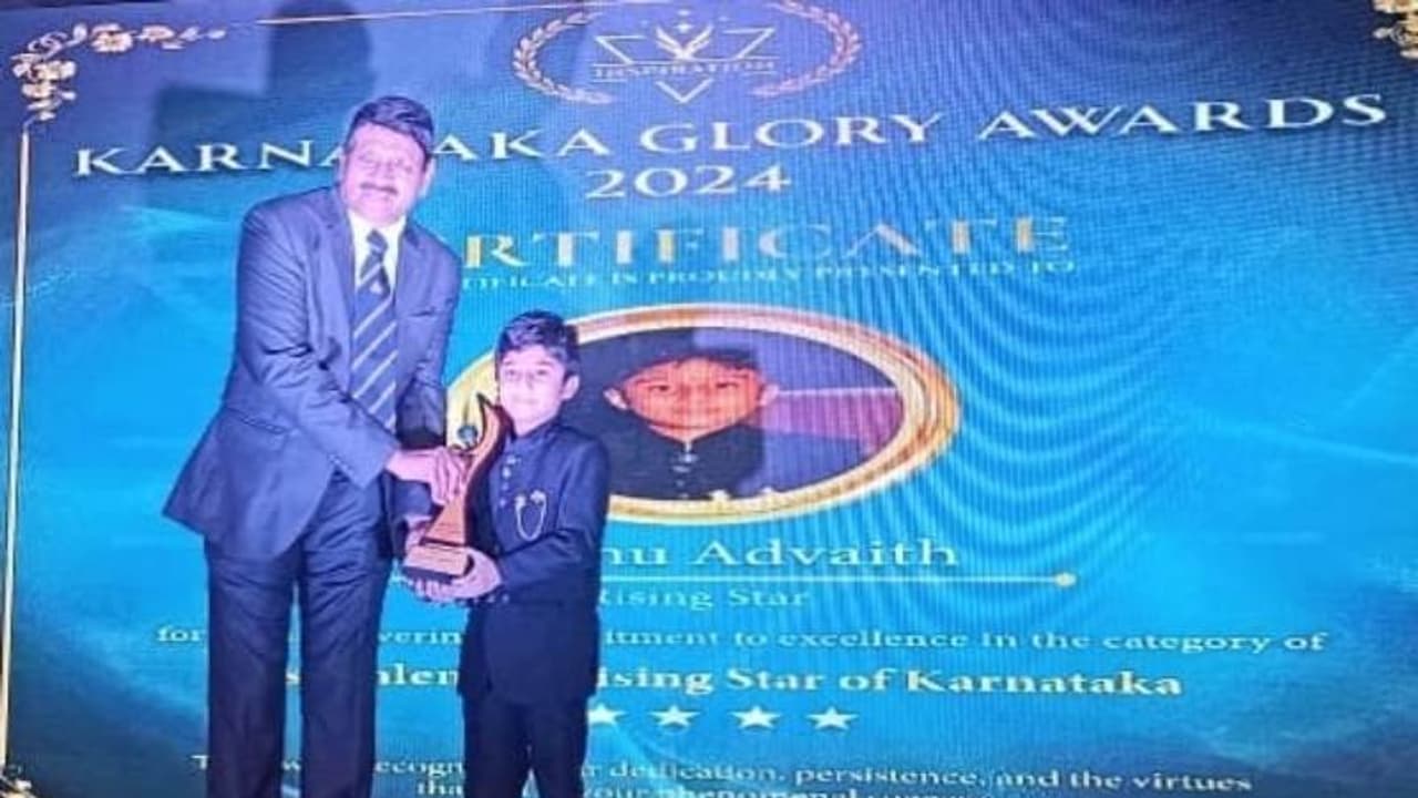 ಬೆಂಗಳೂರಿನಲ್ಲಿ ಇತ್ತೀಚಿಗೆ ನೆಡೆದ ಇನ್ಸ್ಪಿರೇಷನ್ ಅವಾರ್ಡ್ ಹಾಗೂ ಸಮಿತ್ನಲ್ಲಿ ಚಾಮರಾಜನಗರ ತಾಲೂಕಿನ ಕೂಡ್ಲೂರು ಗ್ರಾಮದ ಪುಟಾಣಿ ಪೃಥು ಪಿ ಅದ್ವೈತ್ ಅವರಿಗೆ ಕರ್ನಾಟಕ ಗ್ಲೋರಿ ಅವಾರ್ಡ್ ಪ್ರದಾನ ಮಾಡಲಾಯಿತು. "ಎಕ್ಸೆಲೆನ್ಸ್ ಇನ್ ಬೆಸ್ಟ್ ಟ್ಯಾಲೆಂಟೆಡ್ ರೈಸಿಂಗ್ ಸ್ಟಾರ್ ಆಫ್ ಕರ್ನಾಟಕ " ಎಂಬ ಬಿರುದು ಮತ್ತು ಪ್ರಶಸ್ತಿಯನ್ನು ವಿಶ್ರಾಂತ ಕರ್ನಾಟಕ ಪೊಲೀಸ್ ವರಿಷ್ಠಾಧಿಕಾರಿ ಎಸ್.ಬಿ ಚಬ್ಬಿ ಅವರು ನೀಡಿದರು. ಮೈಸೂರಿನ ಪೂರ್ಣ ಚೇತನ ಪಬ್ಲಿಕ್ ಶಾಲೆಯಲ್ಲಿ ಮೂರನೇ ತರಗತಿ ಓದುತ್ತಿರುವ ಚಾಮರಾಜನಗರದ ಕೂಡ್ಲೂರು ಗ್ರಾಮದ ವಿದ್ಯಾರ್ಥಿ ಪೃಥು ಪಿ ಅದ್ವೈತ್ 30 ನಿಮಿಷದಲ್ಲಿ 150 ಶ್ಲೋಕಗಳನ್ನು ಪಠಿಸಿ ಏಕಕಾಲದಲ್ಲಿ ಮೂರು ವಿಶ್ವ ದಾಖಲೆ ನಿರ್ಮಿಸಿದ್ದರು. ಇದನ್ನು ಗಮನಿಸಿದ ಇನ್ಸ್ಪಿರೇಷನ್ ಅವಾರ್ಡ್ ಸಂಸ್ಥೆಯು ಬೆಂಗಳೂರಿನಲ್ಲಿ ನಡೆದ ಇನ್ಸ್ಪಿರೇಷನ್ ಅವಾರ್ಡ್ ಮತ್ತು ಸಮಿತ್ನ ಕರ್ನಾಟಕ ಗ್ಲೋರಿ ಅವಾರ್ಡ್ -2024 ರಲ್ಲಿ ಪೃಥು ಪಿ ಅದ್ವೈತ್ ಅವರನ್ನು ರೈಸಿಂಗ್ ಸ್ಟಾರ್ ಎಂಬ ಪ್ರಶಸ್ತಿ ನೀಡಿ ಗೌರವಿಸಿದರು.ಪ್ರಶಸ್ತಿ ಸ್ವೀಕರಿಸಿದ ವಿದ್ಯಾರ್ಥಿ ಪೃಥು ಪಿ ಅದ್ವೈತ್ ಮಾತನಾಡಿ, ವಿಶ್ವದಾಖಲೆಯನ್ನು ಮೆಚ್ಚಿ ಪ್ರೋತ್ಸಾಹಿಸಿ ನನಗೆ ಈ ಪ್ರಶಸ್ತಿ ನೀಡಿರುವುದು ನನ್ನ ಕಲಿಕೆಯ ಜವಾಬ್ದಾರಿ ಮತ್ತಷ್ಟು ಹೆಚ್ಚಿಸಿದೆ ಎಂದು ತಿಳಿಸಿದರು. ಈ ಸಂದರ್ಭದಲ್ಲಿ ವಿಶ್ರಾಂತ ಪೋಲಿಸ್ ವರಿಷ್ಠಾಧಿಕಾರಿ ಎಸ್.ಬಿ. ಚಬ್ಬಿ ಮಾತನಾಡಿ, ಮಕ್ಕಳ ಸಾಧನೆ ನೋಡುವುದೇ ಬಹಳ ಸಂತೋಷದ ವಿಷಯ. ಮಕ್ಕಳ ಪ್ರತಿಭೆಯನ್ನು ಗುರುತಿಸುವುದು ನಮ್ಮೆಲ್ಲರ ಕರ್ತವ್ಯ. ಏಳನೇ ವರ್ಷದಲ್ಲಿ ಈ ಅಪ್ರತಿಮ ಸಾಧನೆ ಮಾಡುವುದು ಸಾಧಾರಣ ವಿಷಯವಲ್ಲ. ಇವರಿಂದ ಸ್ಫೂರ್ತಿ ಪಡೆದು ಮತ್ತಷ್ಟು ಮಕ್ಕಳು ಸಾಧನೆಯ ಪಥ ತುಳಿಯಲಿ ಎಂದು ತಿಳಿಸಿದರು. ಈ ಸಂದರ್ಭದಲ್ಲಿ ಕರ್ನಾಟಕ ಗ್ಲೋರಿ ಅವಾರ್ಡ್ನ ವ್ಯವಸ್ಥಾಪಕಿ ಶೃತಿ ರಾಕೇಶ್, ಪೋಷಕರಾದ ಪುನೀತ್ ಜಿ, ಪೂಜಾ ಎನ್, ಉದ್ಯಮಿ ಪ್ರದೀಪ್ ದುಬೆ ಸೇರಿದಂತೆ ಹಲವಾರು ಗಣ್ಯರು ಉಪಸ್ಥಿತರಿದ್ದರು.