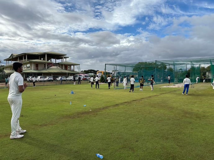 ನಗರದ ನವುಲೆಯ ಕೆಎಸ್ಸಿಎ ಕ್ರಿಕೆಟ್ ಮೈದಾನದಲ್ಲಿ ಗೋವಾ ತಂಡದ ವಿರುದ್ಧ ಅ.25ರಿಂದ ಆರಂಭಗೊಳ್ಳುತ್ತಿರುವ ರಣಜಿ ಟ್ರೋಫಿಯ ಎರಡನೇ ಪಂದ್ಯಕ್ಕಾಗಿ 15 ಆಟಗಾರರ ಕರ್ನಾಟಕ ತಂಡ ಗುರುವಾರ ಶಿವಮೊಗ್ಗಕ್ಕೆ ಆಗಮಿಸಿದ್ದು, ಸಂಜೆ ವೇಳೆ ಆಟಗಾರರು ಕೆಲವೊತ್ತು ಮೈದಾನದಲ್ಲಿ ಬೆವರಿಳಿಸಿದರು.