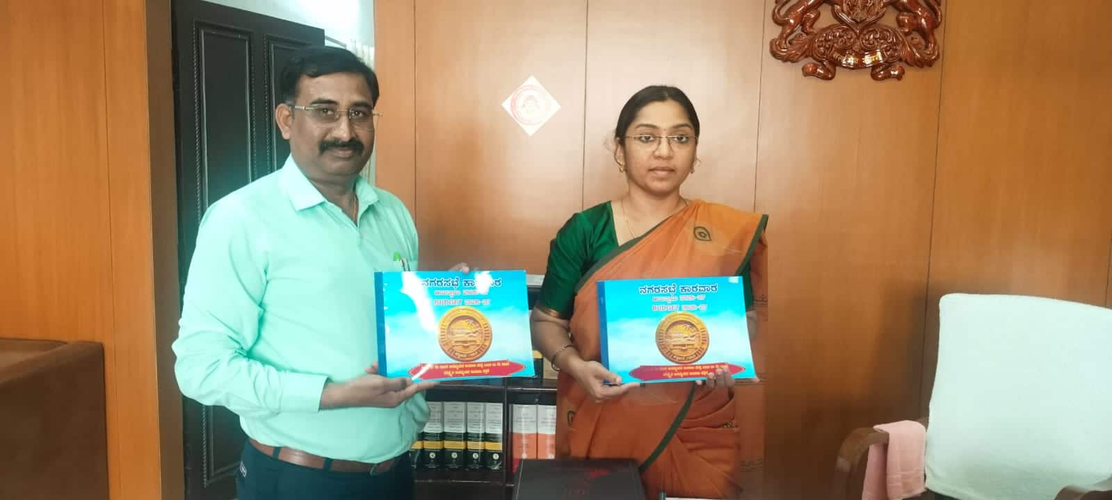 ನಗರಸಭೆ ಪೌರಾಯುಕ್ತ ಜಗದೀಶ ಹುಲಗೆಜ್ಜಿ ಬಜೆಟ್ ಪ್ರತಿಯನ್ನು ಜಿಲ್ಲಾಧಿಕಾರಿ ಅವರಿಗೆ ನೀಡಿದರು.