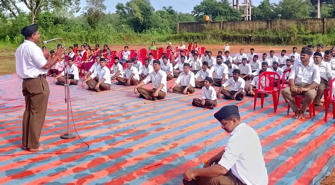ಕಾಪು: ರಾಷ್ಟ್ರೀಯ ಸ್ವಯಂ ಸೇವಕ ಸಂಘಕ್ಕೆ 100 ವರ್ಷಗಳು ತುಂಬಿದ ಸಂದರ್ಭದಲ್ಲಿ ಗುರುವಾರ ಇಲ್ಲಿನ ಶಿರ್ವ, ಬೆಳ್ಳೆ, ಕಟ್ಟಿಂಗೇರಿ ಗ್ರಾಮಗಳನ್ನು ಒಳಗೊಂಡ ಶಿರ್ವ ಮಂಡಲದ ವತಿಯಿಂದ ಮಟ್ಟಾರು ಶ್ರೀಗಣೇಶೋತ್ಸವ ಮೈದಾನದಲ್ಲಿ ಗುರುವಾರ ಜರುಗಿದ ‘ಸಂಘಕ್ಕೆ ನೂರು - ವಿಜಯದಶಮಿ ಉತ್ಸವ’ ನಡೆಯಿತು.