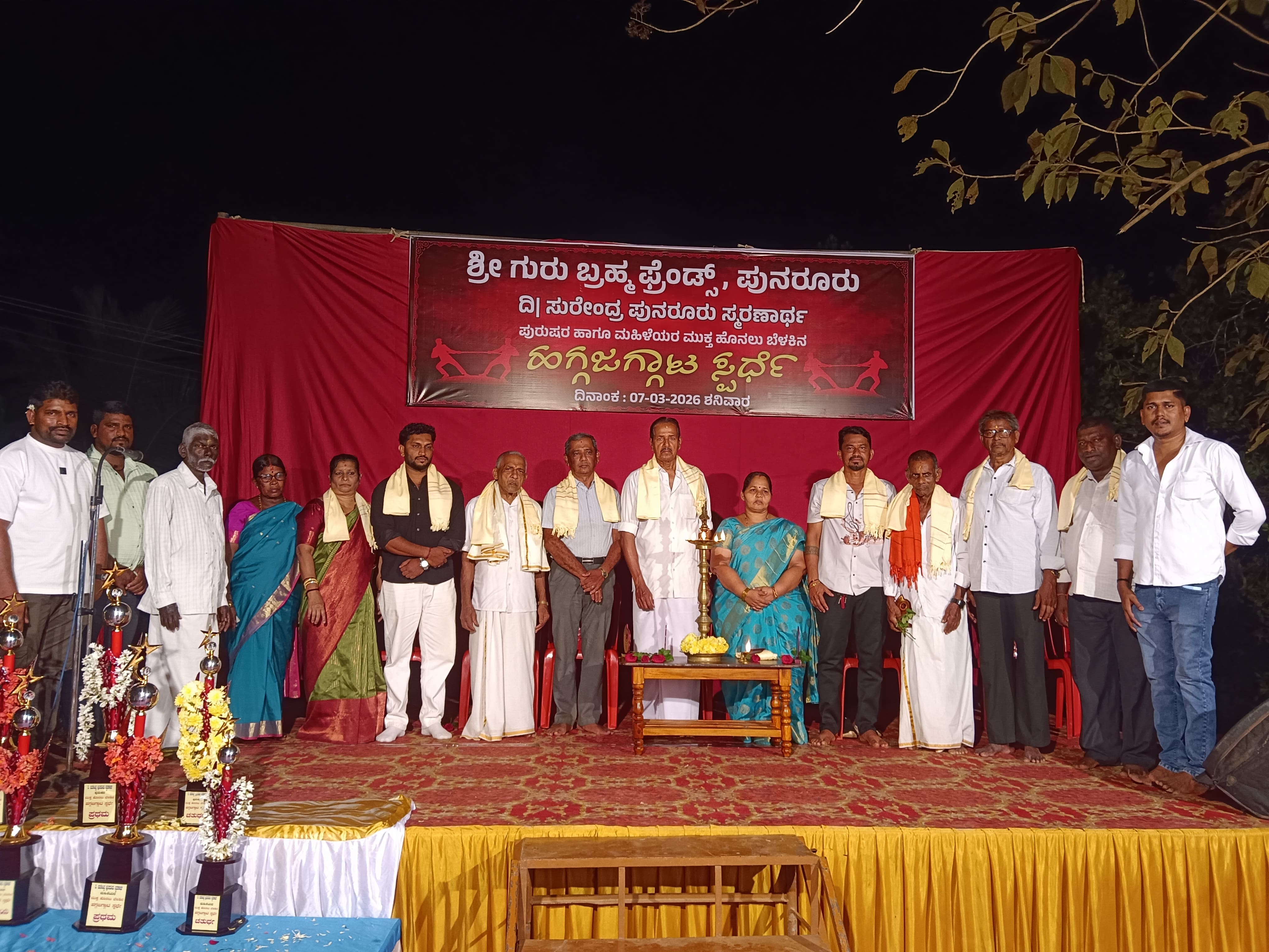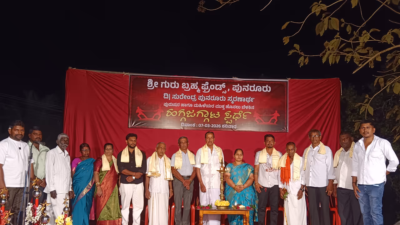 ಪುನರೂರು ಶ್ರೀ ಬ್ರಹ್ಮಮುಗೇರ ದೈವಸ್ಥಾನದ ವಠಾರದಲ್ಲಿ ಪುನರೂರು ಗುರುಬ್ರಹ್ಮ ಫ್ರೆಂಡ್ಸ್ ಆಶ್ರಯದಲ್ಲಿ ಜರುಗಿದ ದಿ. ಸುರೇಂದ್ರ ಪುನರೂರು ಸ್ಮರಣಾರ್ಥ ಪುರುಷರ ಹಾಗೂ ಮಹಿಳೆಯರ ಹಗ್ಗ ಜಗ್ಗಟ ಸ್ಪರ್ಧೆಯ ಉದ್ಘಾಟನಾ ಸಮಾರಂಭದ ಅಧ್ಯಕ್ಷತೆ ವಹಿಸಿ ಮಾತನಾಡಿದರು. ಕಿನ್ನಿಗೋಳಿ ಪಟ್ಟಣ ಪಂಚಾಯಿತಿ ಉಪಾಧ್ಯಕ್ಷೆ ಪದ್ಮಲತಾ ರಾವ್ ಅವರನ್ನು ಗೌರವಿಸಲಾಯಿತು. ಪುನರೂರು ಸೇವಾ ನಿಧಿ ಟ್ರಸ್ಟ್ ನ ಸುರೇಶ್ ರಾವ್ ಪುನರೂರು, ಬ್ರಹ್ಮ ಮುಗೇರ ದೈವಸ್ಥಾನ ಜೀರ್ಣೋಧ್ಧಾರ ಸಮಿತಿಯ ರಾಮಚಂದ್ರ ರಾವ್ ಎಸ್. ಕೋಡಿ, ಉದ್ಯಮಿಗಳಾದ ಸುನಿಲ್ ಅಂಚನ್, ತಾರನಾಥ ದೇವಾಡಿಗ, ಕಿನ್ನಿಗೋಳಿ ಗ್ರಾಪಂ ಮಾಜಿ ಸದಸ್ಯೆ ಹೇಮಲತಾ ಪುನರೂರು, ದೈವಸ್ಥಾನದ ಗುರಿಕಾರ ಮುತ್ತಪ್ಪ ಪುನರೂರು, ದೈವಸ್ಥಾನದ ಅರ್ಚಕ ರಘುರಾಮ ಪುನರೂರು, ದೈವಸ್ಥಾನದ ಚಾರಿಟೇಬಲ್ ಟ್ರಸ್ಟ್ ಅಧ್ಯಕ್ಷ ಹರೀಶ್ ಪಿ., ಟ್ರಸ್ಟ್ ಪ್ರಧಾನ ಕಾರ್ಯದರ್ಶಿ ಉಮೇಶ್ ಪಿ, ಸಂಘಟಕ ಗೋಪಾಲಕೃಷ್ಣ ಪುನರೂರು, ಸಂತೋಷ್ ಪುನರೂರು ಮತ್ತಿತರರು ಉಪಸ್ಥಿತರಿದ್ದರು.ರಾಕೇಶ್ ಪುನರೂರು ಸ್ವಾಗತಿಸಿದರು. ದುರ್ಗಾಪ್ರಸಾದ್ ಕೊಂಡೇಲ ನಿರೂಪಿಸಿದರು. 15ಕ್ಕೂ ಹೆಚ್ಚು ತಂಡಗಳು ಭಾಗವಹಿಸಿದ್ದವು.