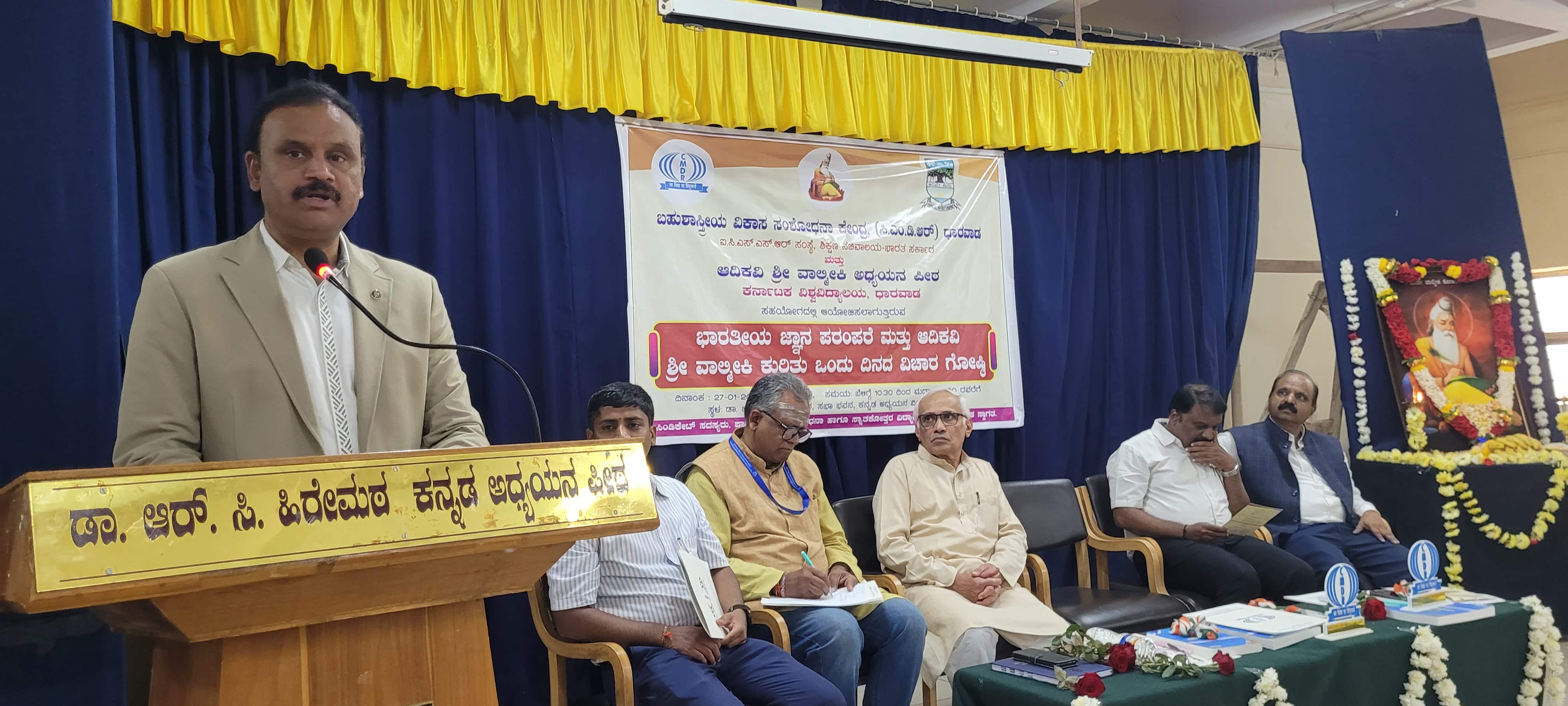 ಅಧ್ಯಯನ ಪೀಠಗಳು ವಿಶೇಷ ಶಿಕ್ಷಣ ಸಂಸ್ಥೆಗಳ ಸಹಯೋಗದಲ್ಲಿ ಕಾರ್ಯಾಗಾರ, ಚಿಂತನೆ, ವಿಚಾರ ಸಂಕಿರಣ ಆಯೋಜಿಸುವುದು ಅವಶ್ಯಕವಾಗಿದೆ. ಪ್ರಸ್ತುತ ತಂತ್ರಜ್ಞಾನದ ಪ್ರಭಾವದಿಂದಾಗಿ ಜ್ಞಾನದ ಹರಿವು ಹೆಚ್ಚಾಗಿದೆ ಎಂದು ಹೇಳಿದರು.ಹಂಪಿ ಕನ್ನಡ ವಿವಿ ಕನ್ನಡ ಅಧ್ಯಯನ ವಿಭಾಗದ ಮುಖ್ಯಸ್ಥ ಡಾ. ವೆಂಕಟಗಿರಿ ದಳವಾಯಿ, ವಾಲ್ಮೀಕಿ ರಾಮಾಯಣ ಐತಿಹಾಸಿಕ ಮಹತ್ವ ಮತ್ತು ವೈಶಿಷ್ಟ್ಯಗಳು ಎಂಬ ವಿಷಯದ ಕುರಿತು ಮಾತನಾಡಿ, ವಾಲ್ಮೀಕಿ ರಾಮಾಯಣವನ್ನು ವಿವಿಧ ರೀತಿಯಲ್ಲಿ ಜನಮಾನರು ತಮ್ಮದೇ ರೀತಿಯಲ್ಲಿ ಅರ್ಥೈಸಿಕೊಂಡಿದ್ದಾರೆ. ರಾಮಾಯಣ ಮತ್ತು ಮಹಾಭಾರತ ಇವು ಭಾರತೀಯ ಸಂಸ್ಕೃತಿಯ ಭಾಷೆಗಳಾಗಿವೆ. ಬುಡಕಟ್ಟು ಸಮುದಾಯದಗಳಲ್ಲಿ ರಾಮಾಯಣ ಹಾಸುಹೊಕ್ಕಾಗಿದೆ. ವಾಲ್ಮೀಕಿ ಮತ್ತು ವ್ಯಾಸರು ಭಾರತದ ಸಂಸ್ಕೃತಿಗೆ ವಿಶೇಷ ಕೊಡುಗೆ ನೀಡಿದ್ದಾರೆ ಎಂದರು.