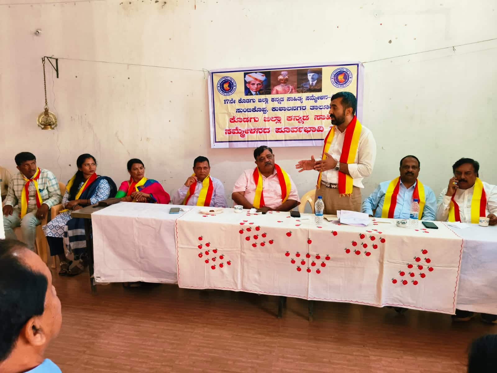 ಕೊಡಗು ಜಿಲ್ಲಾ 17ನೇ ಕನ್ನಡ ಸಾಹಿತ್ಯ ಸಮ್ಮೇಳನ ಮೇ 29, 30 ರಂದು ಸುಂಟಿಕೊಪ್ಪ ಜಿ. ಎಂ.ಪಿ. ಶಾಲಾ ಮೈದಾನದಲ್ಲಿ ನಡೆಯಲಿದೆ.ಗುರುವಾರ ಸುಂಟಿಕೊಪ್ಪ ಕೊಡವ ಸಮಾಜದ ಸಭಾಂಗಣದಲ್ಲಿ ಕೊಡಗು ಜಿಲ್ಲಾ ಕನ್ನಡ ಸಾಹಿತ್ಯ ಸಮ್ಮೇಳನದ ಸ್ವಾಗತ ಸಮಿತಿಯ ಅಧ್ಯಕ್ಷರಾದ ಮಡಿಕೇರಿ ಶಾಸಕ ಡಾ. ಮಂತರ್ಗೌಡ ಅವರ ಅಧ್ಯಕ್ಷತೆಯಲ್ಲಿ ನಡೆದ ಪೂರ್ವಭಾವಿ ಸಭೆಯಲ್ಲಿ ಈ ತೀರ್ಮಾನ ಕೈಗೊಳ್ಳಲಾಗಿದೆ.ಸಭೆಯಲ್ಲಿ ಮಾತನಾಡಿದ ಶಾಸಕರು, ಆರ್ಥಿಕ ಸಂಪನ್ಮೂಲ ಕ್ರೋಡೀಕರಣದ ಕುರಿತು ಯಾವುದೇ ಆತಂಕ ಬೇಡ ಸಮ್ಮೇಳನವನ್ನು ಐತಿಹಾಸಿಕವಾಗಿ ಸದಾಕಾಲ ನೆನಪಿಸಿಕೊಳ್ಳುವಂತಹ ಮುಂದಿನ ಎಲ್ಲಾ ಸಮ್ಮೇಳನಗಳಿಗೆ ಮಾದರಿಯಾಗುವಂತಹ ರೀತಿಯಲ್ಲಿ ಆಯೋಜಿಸಬೇಕು ಎಂದು ಅವರು ಕರೆ ನೀಡಿದರು. ವಿಶೇಷವಾಗಿ ಯುವಕರು ಮತ್ತು ಮಹಿಳೆಯರನ್ನು ಸಂರ್ಪಕಿಸಿ ಸಾಹಿತ್ಯದ ಕಡೆಗೆ ಅವರನ್ನು ಸೆಳೆಯಬೇಕೆಂದು ಕಿವಿಮಾತು ಹೇಳಿದರು. ಜಿಲ್ಲಾಮಟ್ಟದ ಕಾರ್ಯಕ್ರಮ ವಾಗಿರುವ ಹಿನ್ನಲೆಯಲ್ಲಿ ಸುಂಟಿಕೊಪ್ಪ ಅಥವಾ ಮಡಿಕೇರಿ ಕ್ಷೇತ್ರಕ್ಕೆ ಸೀಮಿತವಾಗಿಸದೆ ಜಿಲ್ಲೆಯ 104 ಗ್ರಾಮ ಪಂಚಾಯಿತಿಗಳನ್ನು ತಲುಪಿ ಜಿಲ್ಲೆಯ ಎಲ್ಲೇಡೆಗಳಿಂದ ಸಾಹಿತ್ಯ ಅಭಿಮಾನಿಗಳು ಆಸಕ್ತರು ಕನ್ನಡಿಗರು ಸಹಸ್ರ ಸಹಸ್ರ ಸಂಖ್ಯೆಯಲ್ಲಿ ಬರುವಂತಾಗಬೇಕು ಎಂದು ಅವರು ಹೇಳಿದರು. ಏ.23ರವರೆಗೆ ಪೂರ್ವ ನಿಗದಿತ ಕಾರ್ಯಕ್ರಮಗಳಲ್ಲಿ ತಾವು ತೊಡಗಿಕೊಂಡಿದ್ದು ಆನಂತರದ ದಿನಗಳಲ್ಲಿ ಮುಖ್ಯ ಮಂತ್ರಿಗಳನ್ನು ಭೇಟಿಯಾಗುವುದರಿಂದ ಹಿಡಿದು ಜಿಲ್ಲಾ ಉಸ್ತುವಾರಿ ಸಚಿವ ಜಿಲ್ಲೆಯ ಜನಪ್ರತಿನಿಧಿಗಳು ಮತ್ತು ರಾಜ್ಯದ ಕನ್ನಡ ಸಂಸ್ಕೃತಿ ಇಲಾಖೆಯ ಸಚಿವರಾದ ಶಿವರಾಜ್ ತಂಗಡಗಿ ಅವರನ್ನು ಜಿಲ್ಲೆ ಆಹ್ವಾನಿಸುವ ಕಾರ್ಯಕ್ರಮಗಳಲ್ಲಿ ತಾನು ನೇತೃತ್ವ ವಹಿಸುತ್ತೇನೆ ಎಂದು ದೃಢವಾಗಿ ನುಡಿದರು. ತಾಲೂಕು ಗ್ಯಾರಂಟಿ ಸಮಿತಿಯ ಅಧ್ಯಕ್ಷರಾದ ವಿ.ಪಿ.ಶಶಿಧರ್ ಅವರು ಮಾತನಾಡಿ, ಸುಂಟಿಕೊಪ್ಪ ಹೋಬಳಿಯು ಒಂದು ವಿಶಿಷ್ಟ ಭೂ ಪ್ರದೇಶವಾಗಿದ್ದು ಸರ್ವಜನಾಂಗದ ಶಾಂತಿಯ ತೋಟವಾಗಿದೆ. ಇಲ್ಲಿ ಕುಶಾಲನಗರ ತಾಲೂಕು ಪ್ರಥಮ ಕನ್ನಡ ಸಾಹಿತ್ಯ ಸಮ್ಮೇಳನ ಮತ್ತು ಐಗೂರಿನಲ್ಲಿ ನಡೆದ ಸೋಮವಾರಪೇಟೆ ತಾಲೂಕು ಕನ್ನಡ ಸಾಹಿತ್ಯ ಸಮ್ಮೇಳನ ಯಶಸ್ವಿ ಆಯೋಜನೆಯನ್ನು ಮಾದರಿಯಾಗಿ ಇಟ್ಟುಕೊಂಡು ಸುಂಟಿಕೊಪ್ಪದಲ್ಲಿ ಅತ್ಯಂತ ವಿಜೃಂಭಣೆಯಿಂದ ಸಾಹಿತ್ಯ ಸಮ್ಮೇಳನವನ್ನು ಆಯೋಜಿಸಿ ಎಂದು ಕರೆ ನೀಡಿದರು. ಈ ಸಭೆಯಲ್ಲಿ ಸಾಹಿತ್ಯ ಸಮ್ಮೇಳನದ ಯಶಸ್ವಿಗಾಗಿ ಪ್ರಾಸ್ತಾವಿಕವಾಗಿ ಮಾತನಾಡಿದ ಜಿಲ್ಲಾ ಕನ್ನಡ ಸಾಹಿತ್ಯ ಪರಿಷತ್ನ ಮಾಜಿ ಅಧ್ಯಕ್ಷರಾದ ಟಿ.ಪಿ.ರಮೇಶ್ ಮಾತನಾಡಿ, ಕೊಡಗು ಜಿಲ್ಲೆಯಲ್ಲಿ ತನ್ನದೆಯಾದ ವೈಶಿಷ್ಟ್ಯತೆ ಪರಂಪರೆಯನ್ನು ಹೊಂದಿರುವ ಸುಂಟಿಕೊಪ್ಪ ಹೋಬಳಿಯಲ್ಲಿ ಈ ಸಾಲಿನ ಜಿಲ್ಲಾ ಕನ್ನಡ ಸಾಹಿತ್ಯ ಸಮ್ಮೇಳನವನ್ನು ನಡೆಸಲು ತೀರ್ಮಾನಿಸಲಾಗಿದೆ. ಸಮ್ಮೇಳನವು 2 ದಿನ ಕಾಲ ನಡೆಯಲಿದ್ದು, 29 ರ ಸಂಜೆ ಸಮ್ಮೇಳನಾಧ್ಯಕ್ಷರ ಮೆರವಣಿಗೆ ಮತ್ತು 30 ರಂದು ಸಮ್ಮೇಳನದ ಅಂಗವಾಗಿ ವಿವಿಧ ಕಾರ್ಯಕ್ರಮಗಳು ನಡೆಯಲಿವೆ. ಸಮ್ಮೇಳನದ ಯಶಸ್ವಿಗಾಗಿ ಅಂದಾಜು 18 ರಿಂದ19 ಲಕ್ಷ ರು. ವೆಚ್ಚ ತಗುಲಿದ್ದು ಸಮ್ಮೇಳನವನ್ನು ಅರ್ಥಪೂರ್ಣವಾಗಿ ನಡೆಸಲು 11 ಉಪ ಸಮಿತಿಗಳ ರಚನೆಯಾಗಿದೆ. ಈ ಹಿನ್ನಲೆಯಲ್ಲಿ ನಾವೆಲ್ಲಾರೂ ಕನ್ನಡ ಭಾಷೆ ಮತ್ತು ಸಾಹಿತ್ಯದ ಒಂದೇ ದೃಷ್ಟಿಕೋನದ ಹಿನ್ನಲೆಯಲ್ಲಿ ನಾವೆಲ್ಲಾರೂ ಒಂದಾಗಿ ದುಡಿಯೋಣ ಎಂದು ಕರೆ ನೀಡಿದರು. 5 ಲಕ್ಷ ರು. ಅನುದಾನ 
