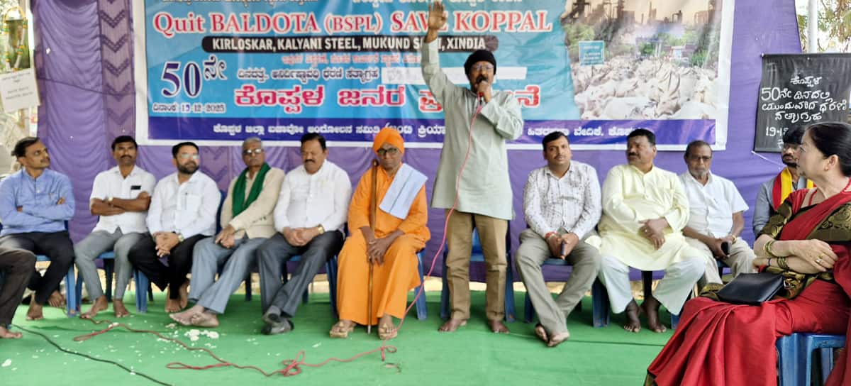 ಬಿಎಸ್ಪಿಎಲ್ಸ್ಥಾಪನೆ ವಿರೋಧಿಸಿ ಕೊಪ್ಪಳ ಜಿಲ್ಲಾ ಬಚಾವೋ ಆಂದೋಲನ ಸಮಿತಿ ಹಾಗೂ ಪರಿಸರ ಹಿತರಕಾಷಣಾ ವೇದಿಕೆ ಜಂಟಿ ಕ್ರಿಯಾ ವೇದಿಕೆ ನಡೆಸುತ್ತಿರುವ ಅನಿರ್ಧಿಷ್ಟ ಧರಣಿಯ 50ನೇ ದಿನದ ಹೋರಾಟದಲ್ಲಿ ಪಾಲ್ಗೊಂಡು ಮಾತನಾಡಿದರು.ತಂತ್ರಜ್ಞಾನ ಶೋಧ ಮಾಡುವವರು ನಮ್ಮೊಂದಿಗೆ ಬರಬೇಕು, ಆಗ ನಾವು ಸತ್ಯದ ದರ್ಶನ ಮಾಡಿಸುತ್ತೇವೆ. ಕೊಪ್ಪಳ ಸುತ್ತಮುತ್ತ 202 ಕಾರ್ಖಾನೆಗಳು ಯಾಕೆ ಬಂದಿವೆ ಎಂದರೆ ತುಂಗಭದ್ರಾ ಜಲ ಮೂಲವಿದೆ. ಅದನ್ನು ಕಬಳಿಸಲು ಬಂದಿವೆ ಅಷ್ಟೇ. ಗಾಳಿಯಲ್ಲಿ ಮಾಲಿನ್ಯ ತುಂಬುತ್ತಿವೆ. ನಾವು ಅಭಿವೃದ್ಧಿಯ ವಿರೋಧಿಗಳಲ್ಲ. ಪ್ರಗತಿ ಮತ್ತು ಪ್ರಕೃತಿ ಕೂಡಿ ಹೋಗಬೇಕು. ಬಸಾಪುರ ಕೆರೆ ಜನ ಜಾನುವಾರಗಳಿಗೆ ಮುಕ್ತಗೊಳಿಸಬೇಕು. ನಾವು ಮಾನವ ಹಕ್ಕು ಆಯೋಗ ಮುಂತಾದ ಆಯೋಗದಲ್ಲಿ ಪ್ರಕರಣ ದಾಖಲು ಮಾಡಿ ನಿಮಗೆ ನ್ಯಾಯ ಸಿಗುವವರೆಗೆ ಹೋರಾಡುತ್ತೇವೆ. ನಮ್ಮಲ್ಲಿ ಶಕ್ತಿ ಇದ್ದರೆ ಯಾರಾದರೂ ಮಾತು ಕೇಳುತ್ತಾರೆ. ಜನರ ಕೂಗು ಸರ್ಕಾರ ಕೇಳಬೇಕು. ಎಂಜಲು ಕಾಸಿಗೆ ಕೈ ಒಡ್ದುತ್ತಿದ್ದಾರೆ. ಅನ್ನದಾತನ ಅಹವಾಲು ಸರ್ಕಾರ ಕೇಳಬೇಕು. ಜನರ ಕಣ್ಣೀರು ಒರೆಸುವ ಕಾರ್ಯ ಯಾವುದೇ ಧರ್ಮ ಕಾರ್ಯಕ್ಕಿಂತ ಮೇಲು. ಹಣ ದೊಡ್ಡದೋ, ಜನ ಶಕ್ತಿ ದೊಡ್ಡದೋ, ಒಳ್ಳೆಯದು ದೊಡ್ಡದೋ ಕೆಟ್ಟದ್ದು ದೊಡ್ಡದೋ ತೀರ್ಮಾನವಾಗಬೇಕು ಎಂದರು.