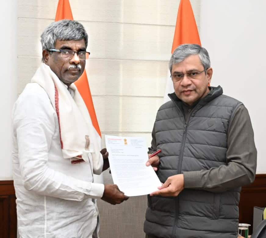 ಕೇಂದ್ರ ರೈಲ್ವೆ ಸಚಿವ ಅಶ್ವಿನಿ ವೈಷ್ಣವ್ ಭೇಟಿಯಾದ ಉಡುಪಿ-ಚಿಕ್ಕಮಗಳೂರು ಸಂಸದ