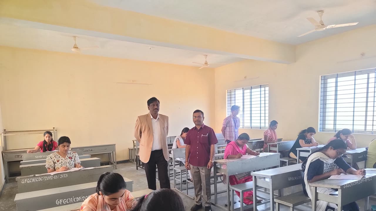 ನಗರದ ಜಿ.ಎಚ್.ಕಾಲೇಜು, ಗಾಂಧಿಪುರ ಸರ್ಕಾರಿ ಪ್ರಥಮ ದರ್ಜೆ ಕಾಲೇಜು, ನಗರದ ಸರ್ಕಾರಿ ಪದವಿ ಪೂರ್ವ ಬಾಲಕರ ಕಾಲೇಜು, ಇಜಾರಿಲಕಮ್ಮಾಪೂರ ಬಾಲಕಿಯರ ಸರ್ಕಾರಿ ಪದವಿ ಪೂರ್ವ ಕಾಲೇಜಿನಲ್ಲಿ ಪರೀಕ್ಷಾ ಕೇಂದ್ರಗಳನ್ನು ಸ್ಥಾಪಿಸಲಾಗಿತ್ತು. ನಗರದ ವಿವಿಧ ಪರೀಕ್ಷಾ ಕೇಂದ್ರಗಳಿಗೆ ಜಿಲ್ಲಾಧಿಕಾರಿ ಡಾ.ವಿಜಯಮಹಾಂತೇಶ ದಾನಮ್ಮನವರ ಭೇಟಿ ನೀಡಿ ಪರಿಶೀಲಸಿದರು.ಪರೀಕ್ಷೆಗಳು ನಡೆಯುತ್ತಿರುವ ಕೊಠಡಿಗಳಿಗೆ ತೆರಳಿ ಪರೀಕ್ಷೆಯು ಸುಗಮವಾಗಿ ನಡೆಯುತ್ತಿರುವ ಬಗ್ಗೆ ಪರಿಶೀಲಿಸಿದರು. ಪರೀಕ್ಷಾ ಕೇಂದ್ರಗಳಿಗೆ ಪೊಲೀಸ್ ಇಲಾಖೆಯಿಂದ ಕೈಗೊಂಡಿರುವ ಬಿಗಿಭದ್ರತೆ ಮತ್ತು ಪರೀಕ್ಷಾ ಕೊಠಡಿಯಲ್ಲಿ ಅಳವಡಿಸಿದ ಸಿಸಿಟಿವಿ ಕ್ಯಾಮೆರಾ, ಪರೀಕ್ಷಾರ್ಥಿಗಳು ಕೊಠಡಿ ಪ್ರವೇಶಿಸುವಾಗ ಹ್ಯಾಂಡ್ ಮೆಟಲ್ ಡಿಟೇಕ್ಟರ್ ಮತ್ತು ಮೊಬೈಲ್ ನೆಟ್ವರ್ಕ್ ಕಡಿತಗೊಳಿಸಲು ಅಳವಡಿಸಿರುವ ಜಾಮರ್, ವಿದ್ಯುತ್ ವ್ಯವಸ್ಥೆ ಇವುಗಳ ಕಾರ್ಯನಿರ್ವಹಣೆ ಬಗ್ಗೆ ಮಾಹಿತಿ ಪಡೆದು ಪರಿಶೀಲಿಸಿದರು. ಪರೀಕ್ಷೆಗಳು ಸುಗಮವಾಗಿ ನಡೆಯಬೇಕು ಯಾವುದೇ ಗೊಂದಲ ಉಂಟಾಗಬಾರದು ಪರೀಕ್ಷಾ ಕೊಠಡಿಯಲ್ಲಿ ಸಮಸ್ಯೆ ಆದಲ್ಲಿ ಕೂಡಲೇ ಸಂಬಂಧಿಸಿದ ಅಧಿಕಾರಿಗಳ ಗಮನಕ್ಕೆ ತರುವಂತೆ ಪರೀಕ್ಷೆಗೆ ನೇಮಕಗೊಂಡ ಮೇಲ್ವಿಚಾರಕರಿಗೆ ಸೂಚಿಸಿದರು.