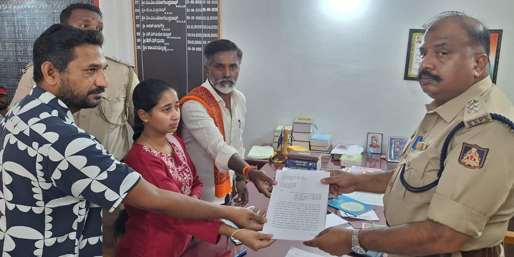 9ಕೆಎಂಎನ್ ಡಿ21,22ಶ್ರೀರಂಗಪಟ್ಟಣದ ಡಿವೈಎಸ್ಪಿ ಕಚೇರಿಗೆ ಹಿಂದೂ ಜಾಗರಣಾ ವೇದಿಕೆ ಜಿಲ್ಲಾ ಸಂಚಾಲಕ ಚಂದನ್ ಜೊತೆಗೆ ಹಲ್ಲೆಗೊಳಗಾಗಿದ್ದ ಬಿ.ಎಸ್ ಅನಿಲ್ ಪತ್ನಿ ರಕ್ಷಿತಾ ಭೇಟಿ ನೀಡಿ ಕೆಆರ್ಎಸ್ ಠಾಣಾ ಅಧಿಕಾರಿಗಳ ವಿರುದ್ಧ ದೂರು ಸಲ್ಲಿಸಿದರು.